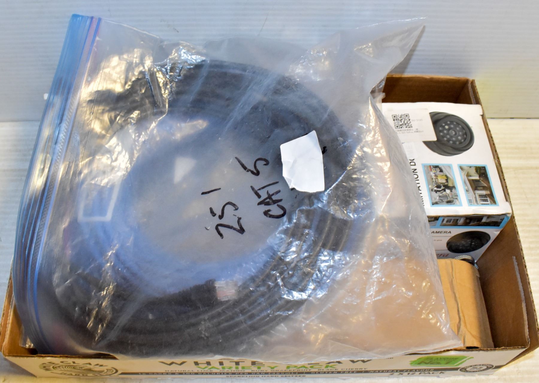 CAT5E CABLES (2) - 25' & 50', DUMMY SECURITY CAMERA, 3-6' HDMI CABLES & CAR LIGHTER POWER INVERTER