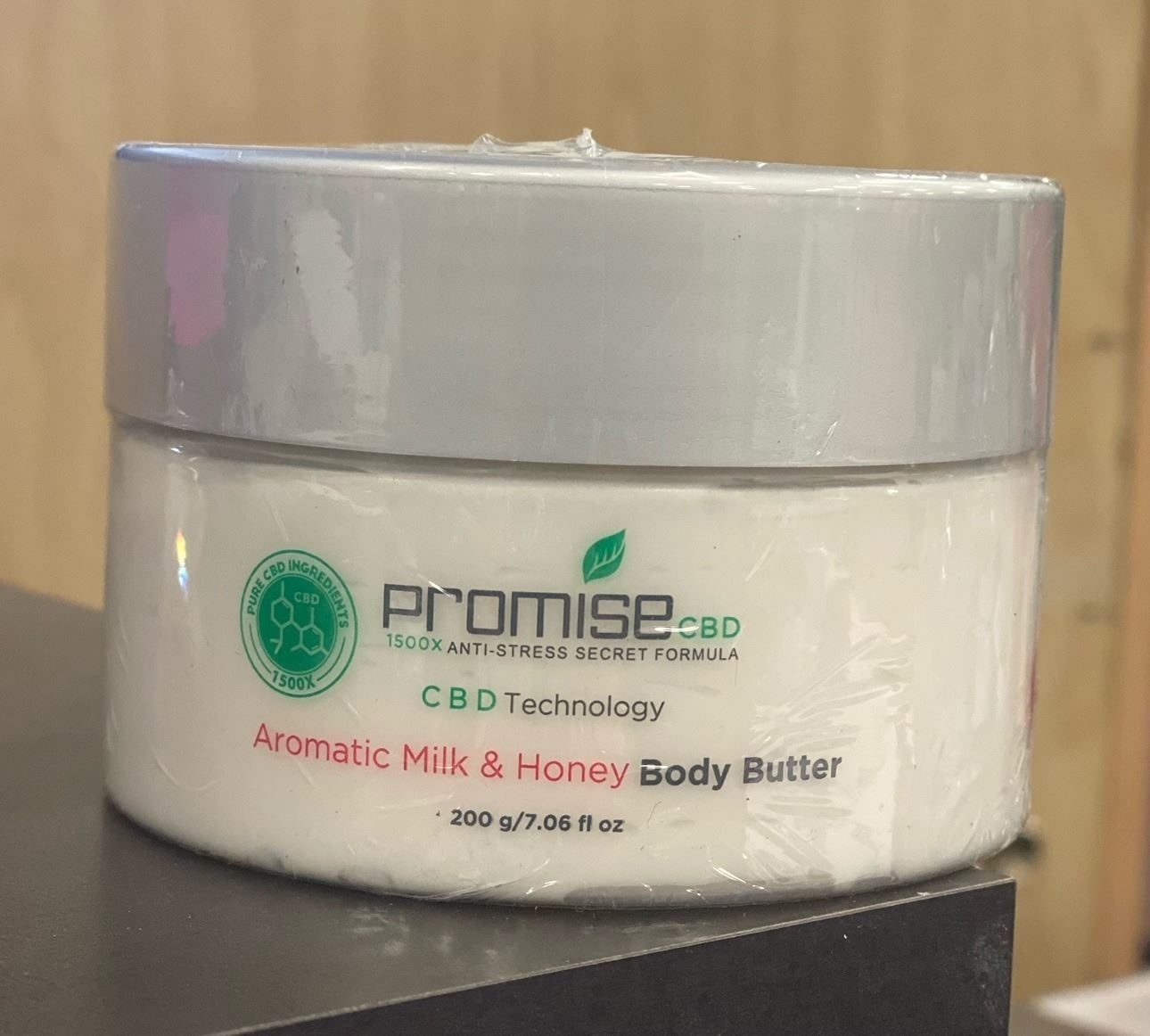 PROMISE CBD INFUSED AROMATIC MILK AND HONEY BODY BUTTER WITH STEM CELLS 200G MSRP 79.99USD. WELLNESS