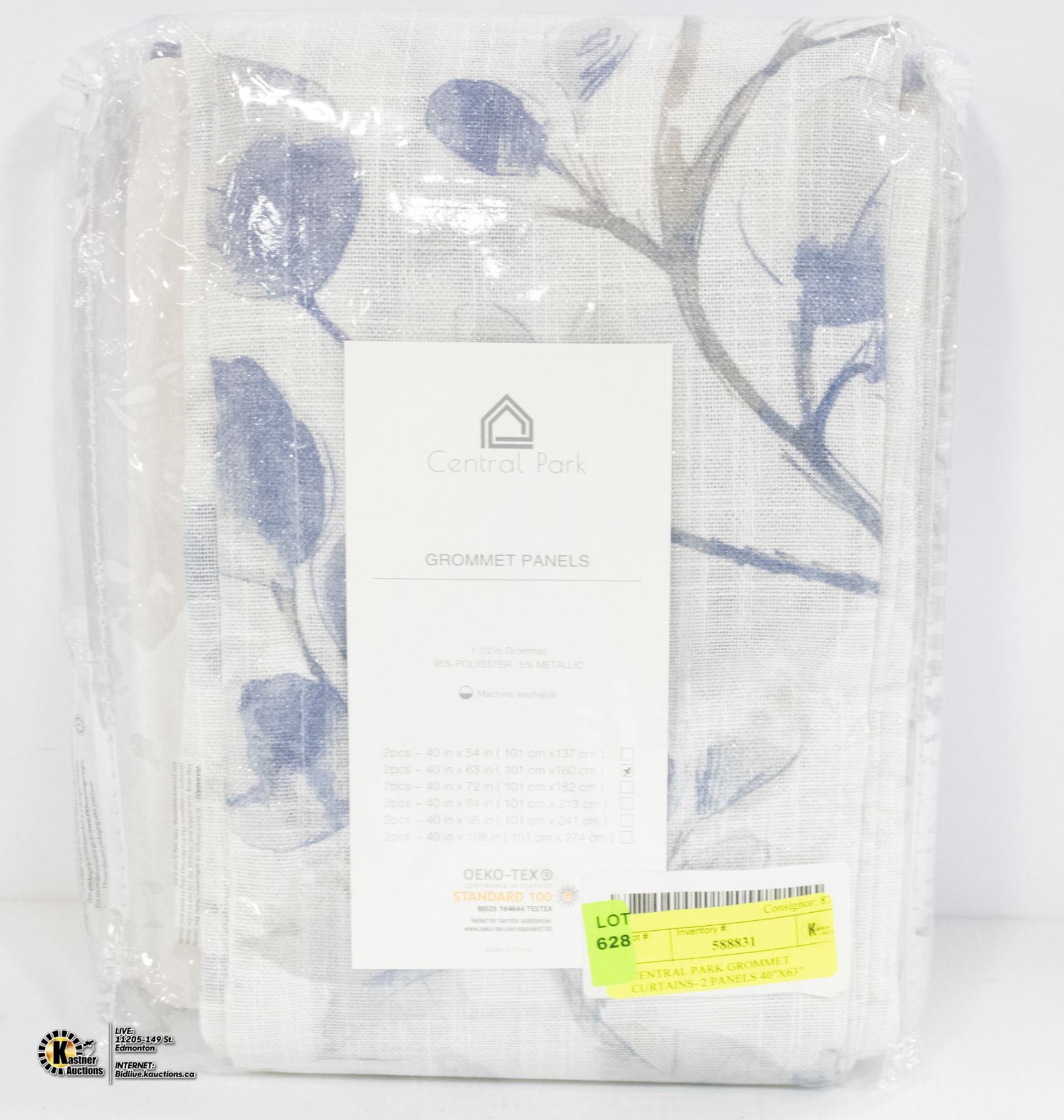 CENTRAL PARK GROMMET CURTAINS 2 PANELS 40" X 63"