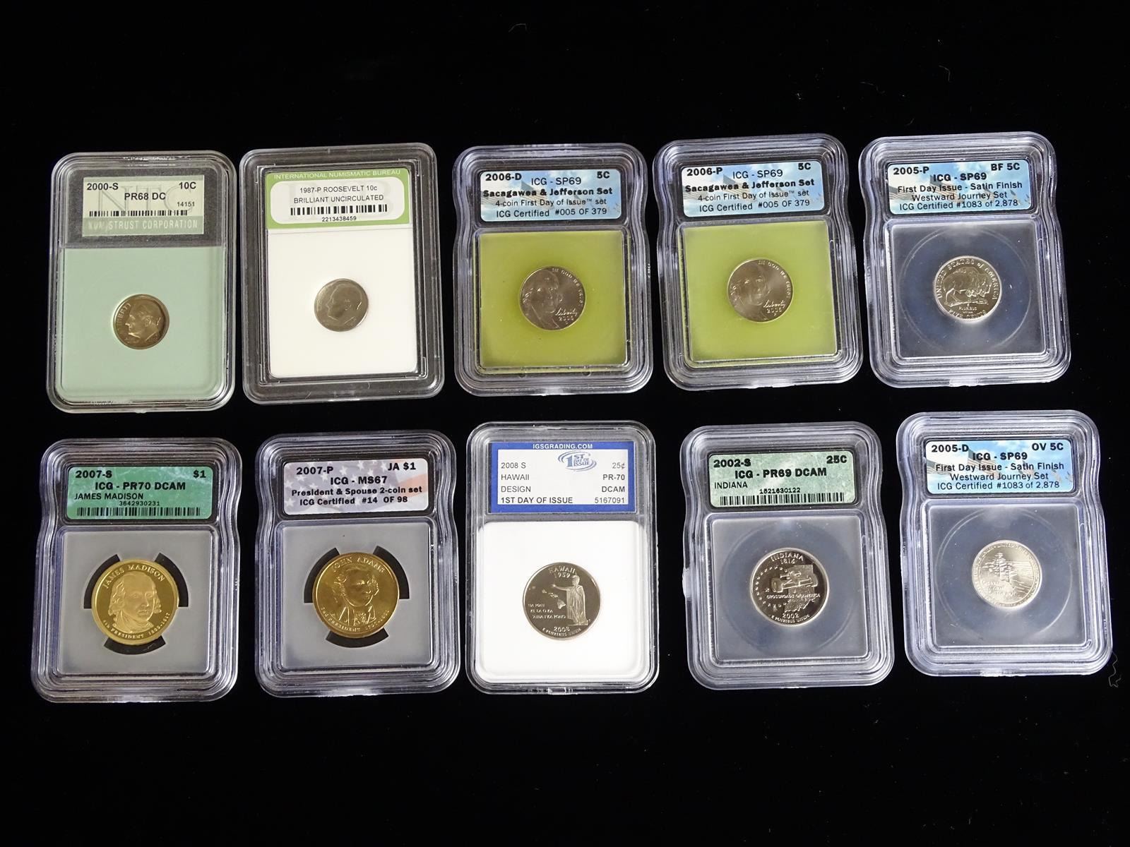 INCLUDES 2000-S DIME, 1987-P DIME, 2006 JEFFERSON 3-COIN, 2002-S QTR., 2008-S QTR., 2007 DOL., 2007-S DOL.