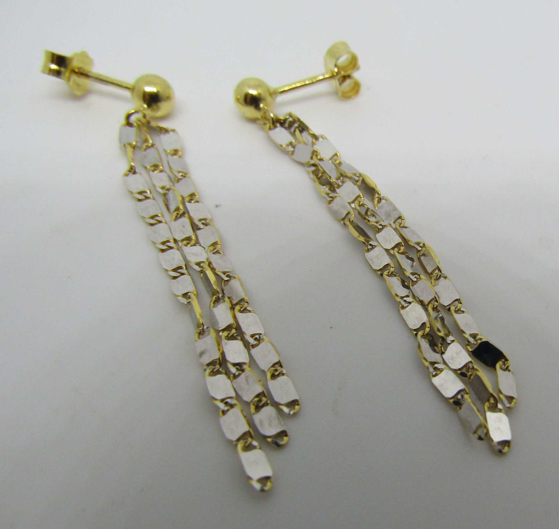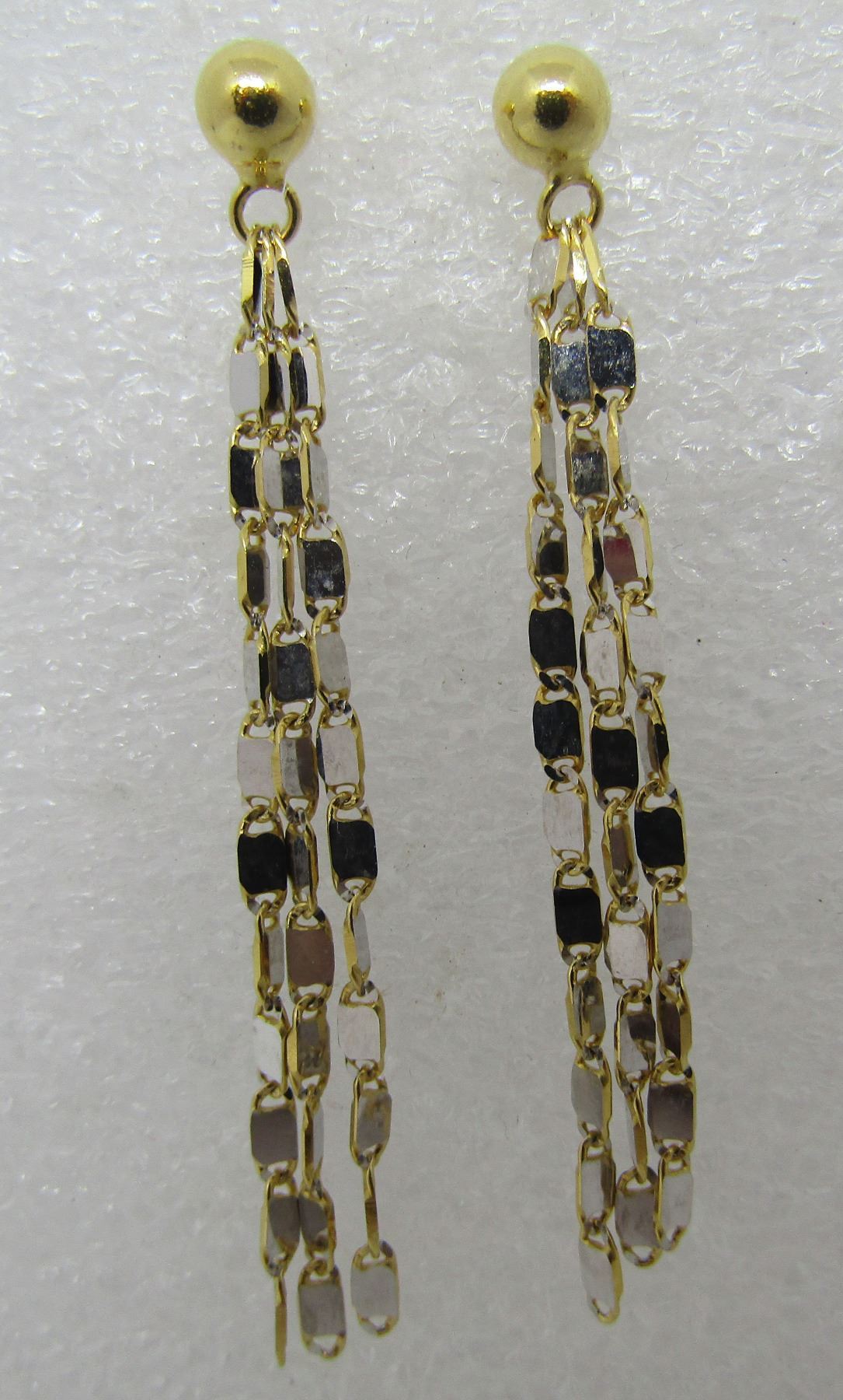VINTAGE ESTATE MARKED "14KT". 1.75 INCHES LONG. 14KT YELLOW PIERCED POST. WEIGH 2.4 GRAMS. EXCELLENT USED CONDITION. USA SHIPPING $5.