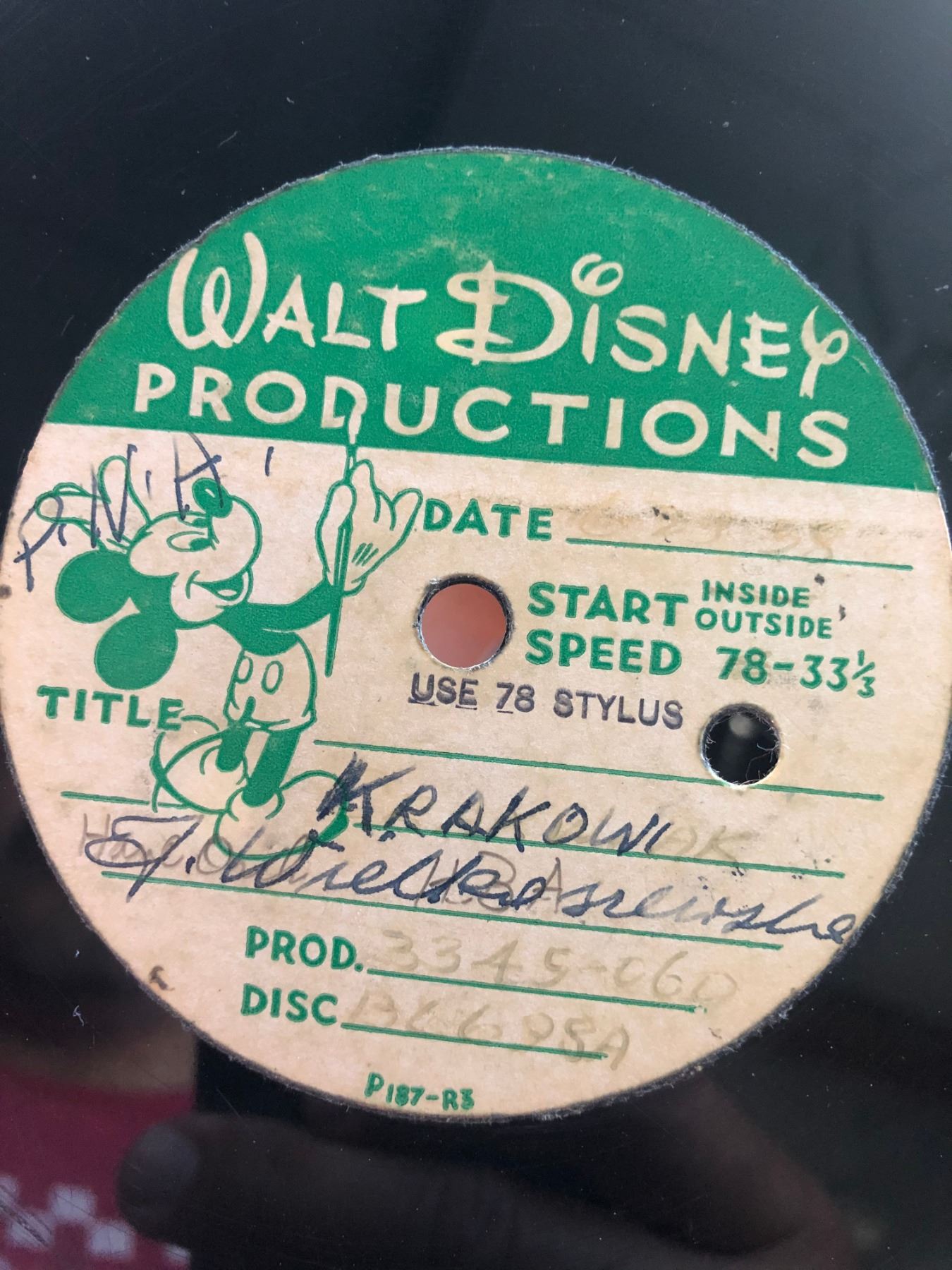 (Disney, Wonderful World of Color, c. 1968). The total hammer price for this item will be donated to littlewishes.org. We are in no way affiliated with the organization. The donation will be made by Grand Circle Tour Auctions, but with a special thank you for the winning bidder. We do this in an effort to promote a spirit of community. A rare production record used on "Walt Disney's Wonderful World of Color" for the 1968 episode "My Family is a Menagerie." Marked with the production number 3345-060. The record is one track only. The record is in working condition with good audio quality for its age and use. Item comes with a Grand Circle Tour Auctions COA.