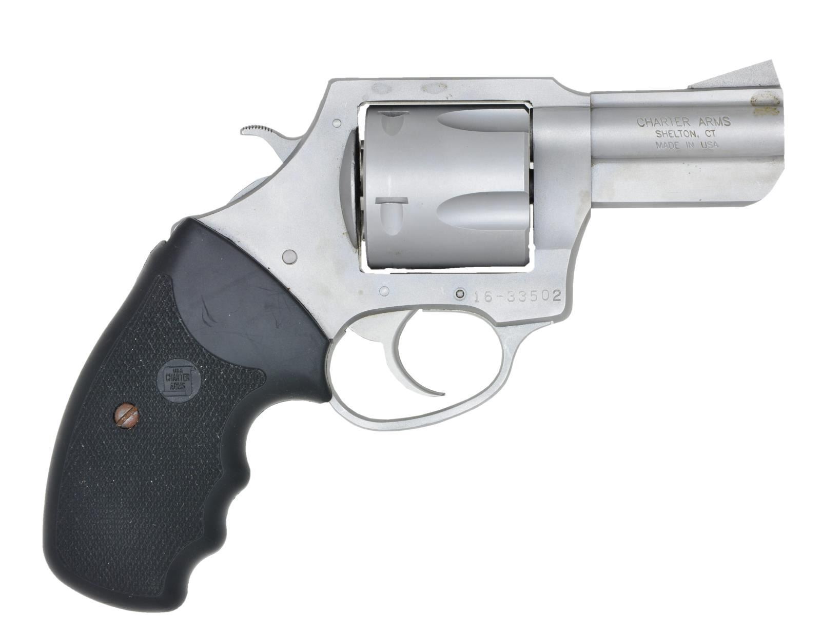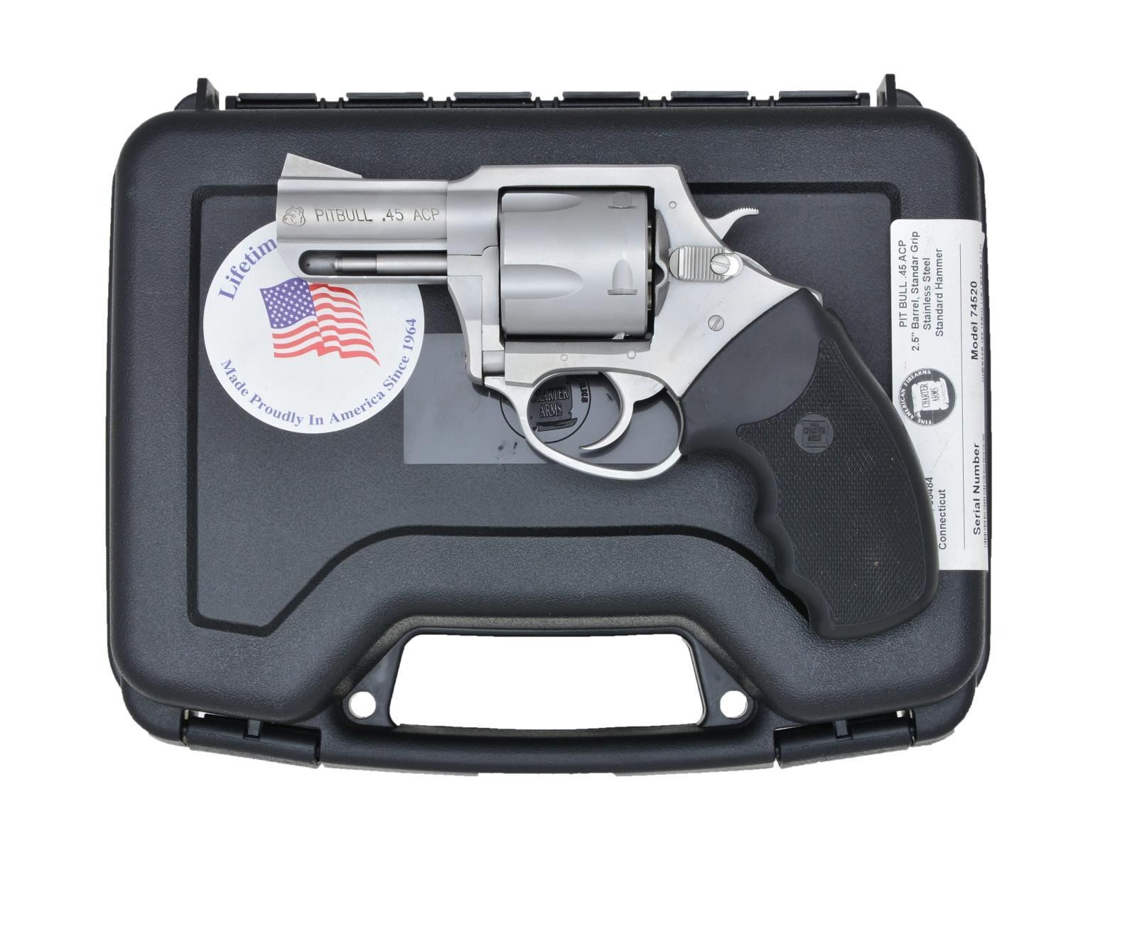 Cal. 45 ACP. S# 16-33502 (2016). Stainless finished w/ 2.5" bbl., fixed sights, 5 shot fluted cyl. & 2 piece Neoprene grips. UNATTACHED ACCESSORIES: black plastic foam lined case w/ matching numbered label containing paperwork & lock. CONDITION: very good overall including bore w/ cyl. turn line. (22-1756/MD). MODERN. $300-400.