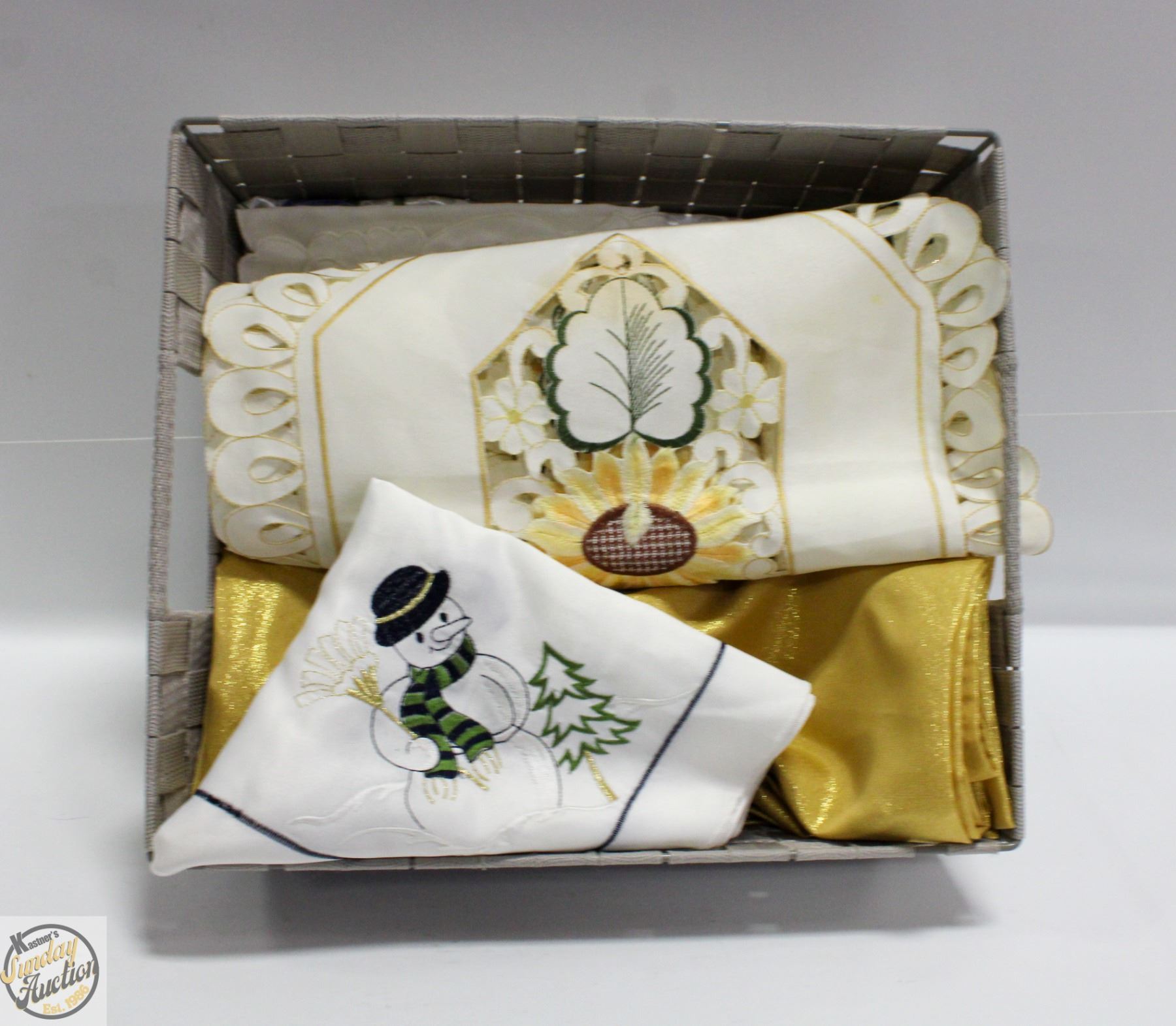 CHRISTMAS LINENS - 8 RUNNERS & TABLECLOTHS