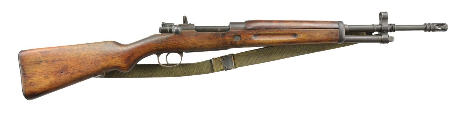 Cal. 308 Win. S# FR8-02605 (1951). CAI import marked 19" bbl. including flash suppressor. Accessory storage tube under bbl. Hooded post front sight & adj. rear sight. Matte bead blasted style finish. Hardwood stock set w/ green web sling. CONDITION: Good overall as arsenal refinished w/ moderate handling marks. Metal has several areas of heavy oxidation. Stock has worn finish at wrist, sm. cracks throughout along w/ lg. cracks extending from peak of buttplate. Good bore. (22-1919/MD). CURIO. 250-400.