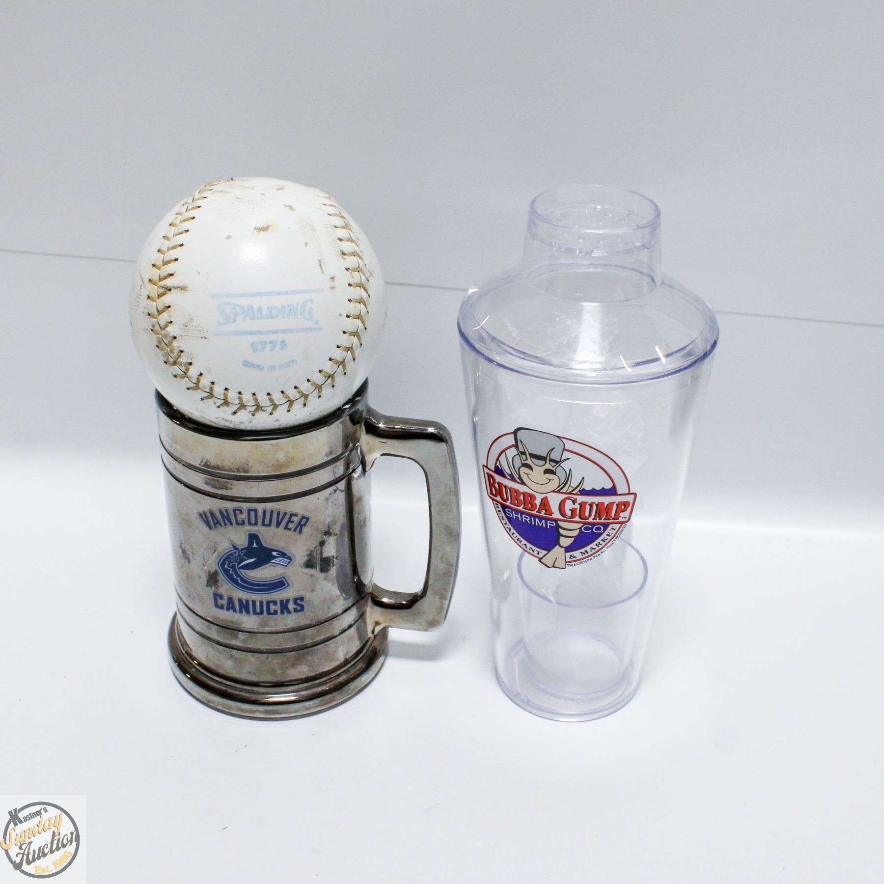 MIXER CUP UNUSED + SPALDING #1775 MADE IN HAITI SOLID CENTRE POWERIZED BASEBALL VINTAGE + VANCOUVER CANUCKS BEER MUG **ALL ITEMS MUST BE REMOVED BY 5PM SATURDAY, FEBRUARY 7TH 2025. ALL REMAINING ITEMS WILL BE SUBJECT TO A $6.00 PER DAY STORAGE CHARGE. ANY ITEMS REMAINING AFTER MONDAY, FEBRUARY 23RD 2025 WILL BE CONSIDERED FORFEITED. NO REFUNDS WILL BE ISSUED FOR FORFEITED ITEMS. TO SCHEDULE A PICK UP APPOINTMENT CLICK HERE
