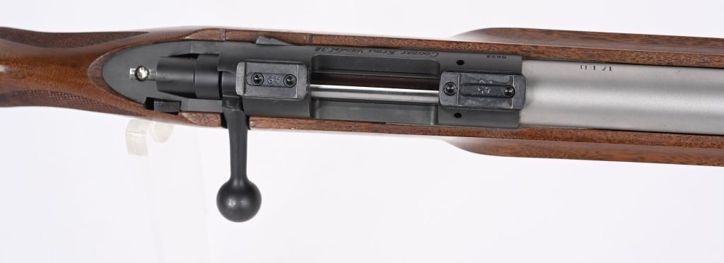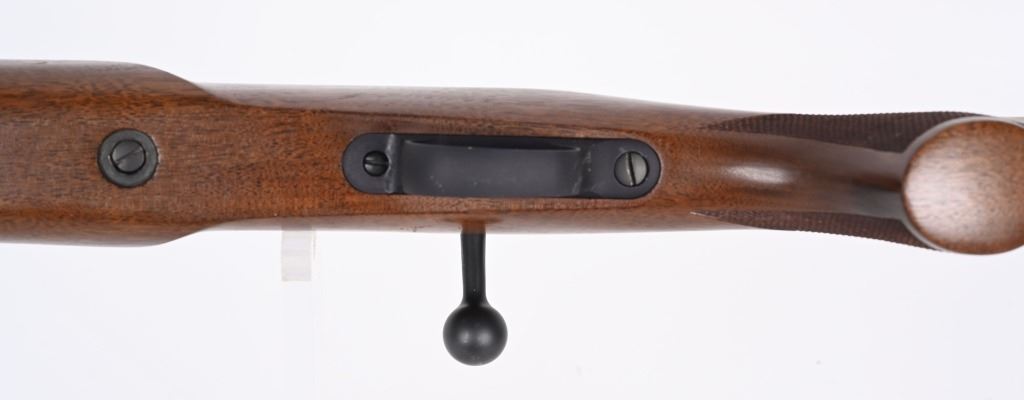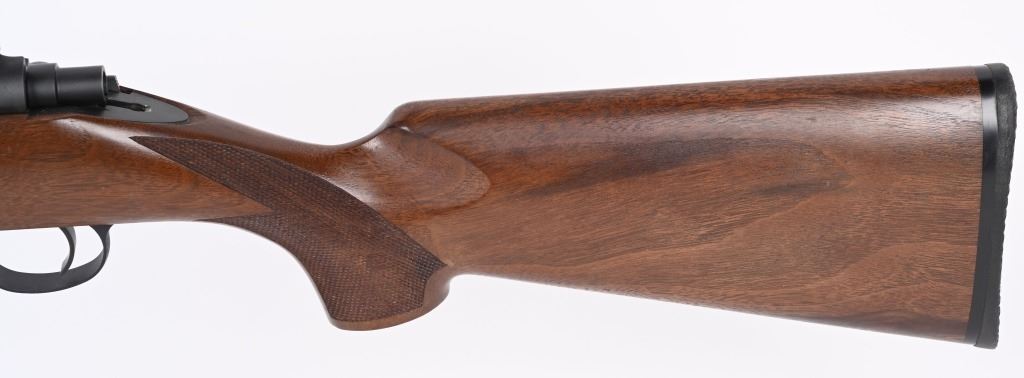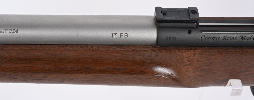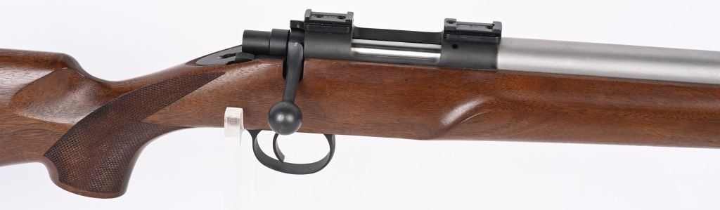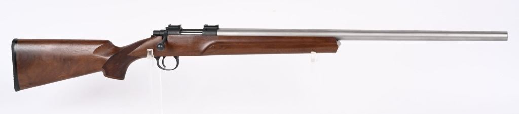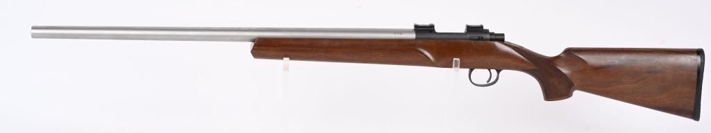 SERIAL NUMBER: 5832. BARREL: 24-1/2". CALIBER: .17 FIREBALL. MANUFACTURED: 2010'S. "STEVENSVILLE MONTANA" address on the heavy matte stainless steel barrel. Matte blued receiver, which looks to have factory scope bases installed.. Oiled wood stock with fine checkering on the wrist. Factory black rubber butt pad. CONDITION: Metal is excellent overall, with a few handling marks. Wood has a few handling marks as well. Bore is clean overall with strong rifling. Mechanically fine. MODERN