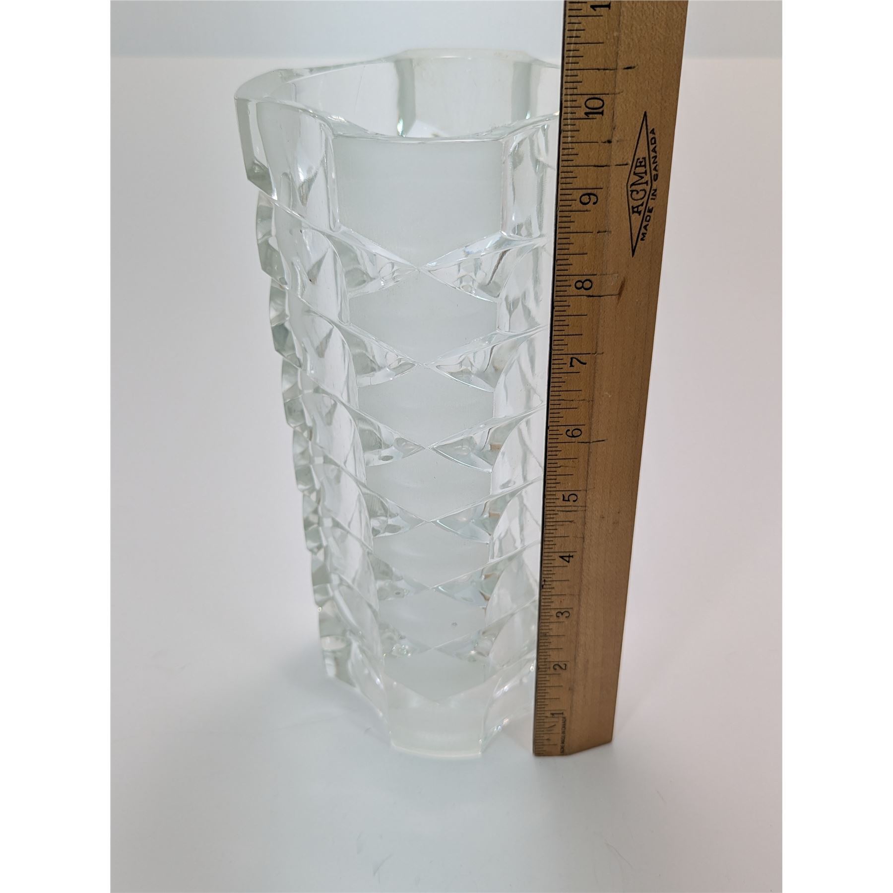 Crystal vase with a distinctive diamond-cut or pattern. Vintage 1970's piece, produced by French glassmaker Cristal d'Arques
