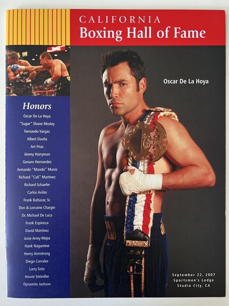 California Boxing Hall of Fame Oscar De La Hoya magazine-Sept 22, 2007-Sportmen's Lodge. Studio City, CA. 9x11 inches