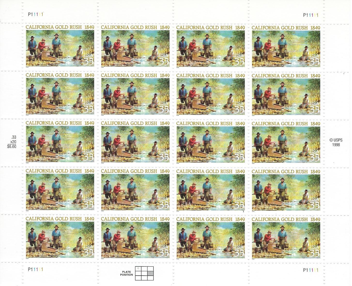 California Gold Rush 1849 20 x 33 cent U.S. Postage Stamps