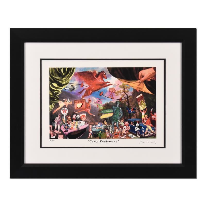 "Camp Trademark" is a limited edition artist proof on paper by Nelson De La Nuez, numbered and hand signed by the artist. This piece comes custom framed. Includes Letter of Authenticity. Measures approx. 26" x 21" (frame), 15" x 10" (image).