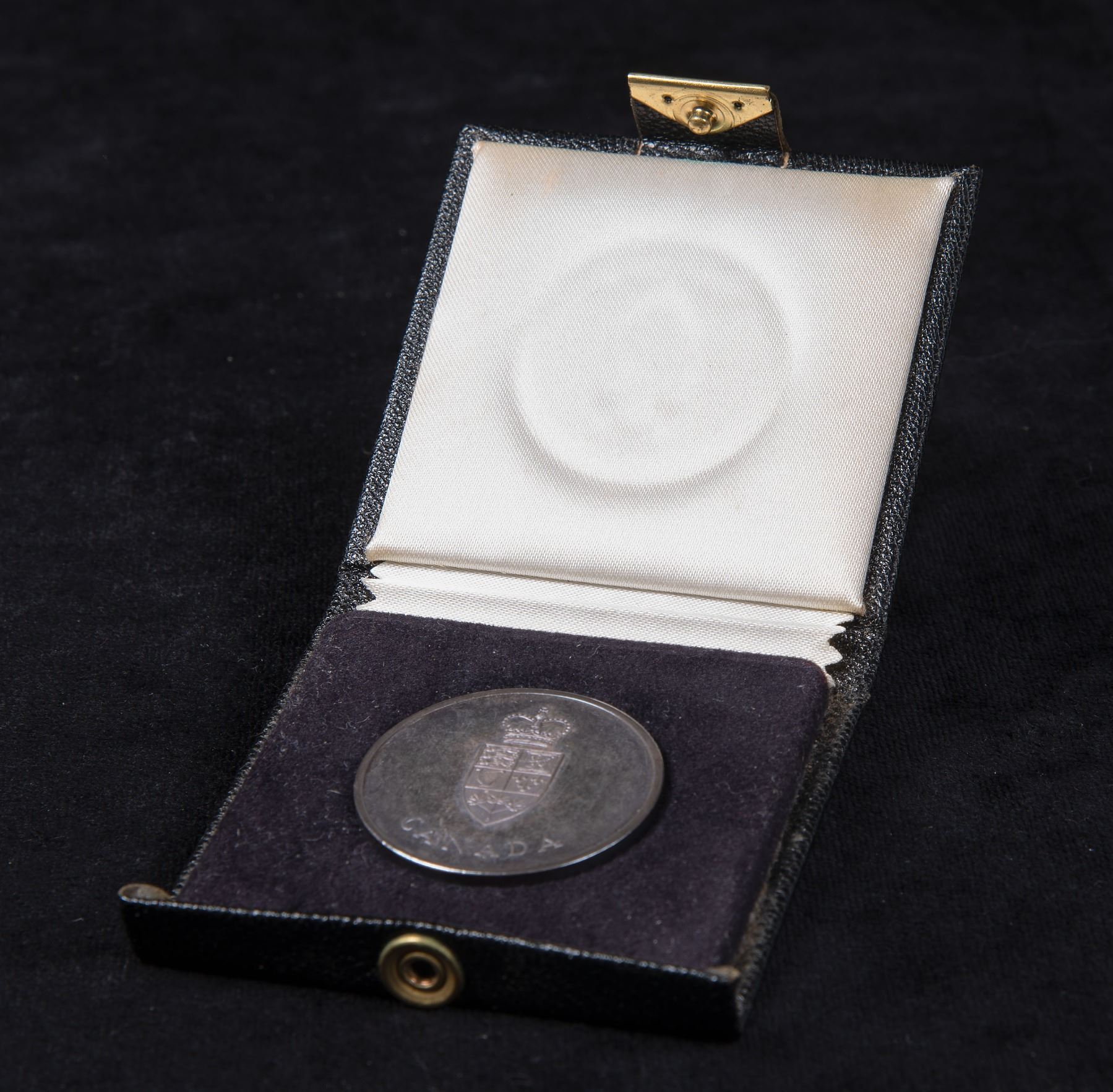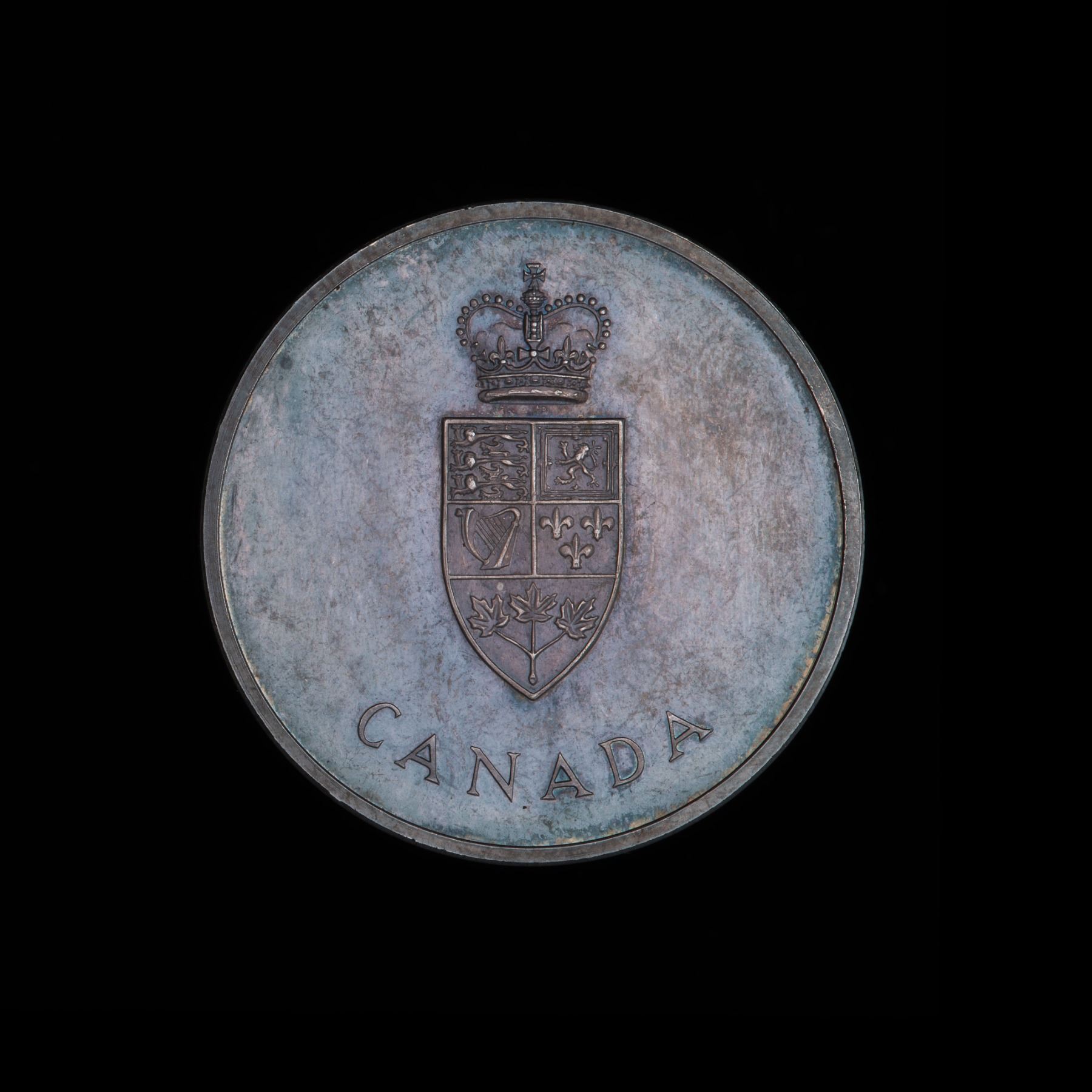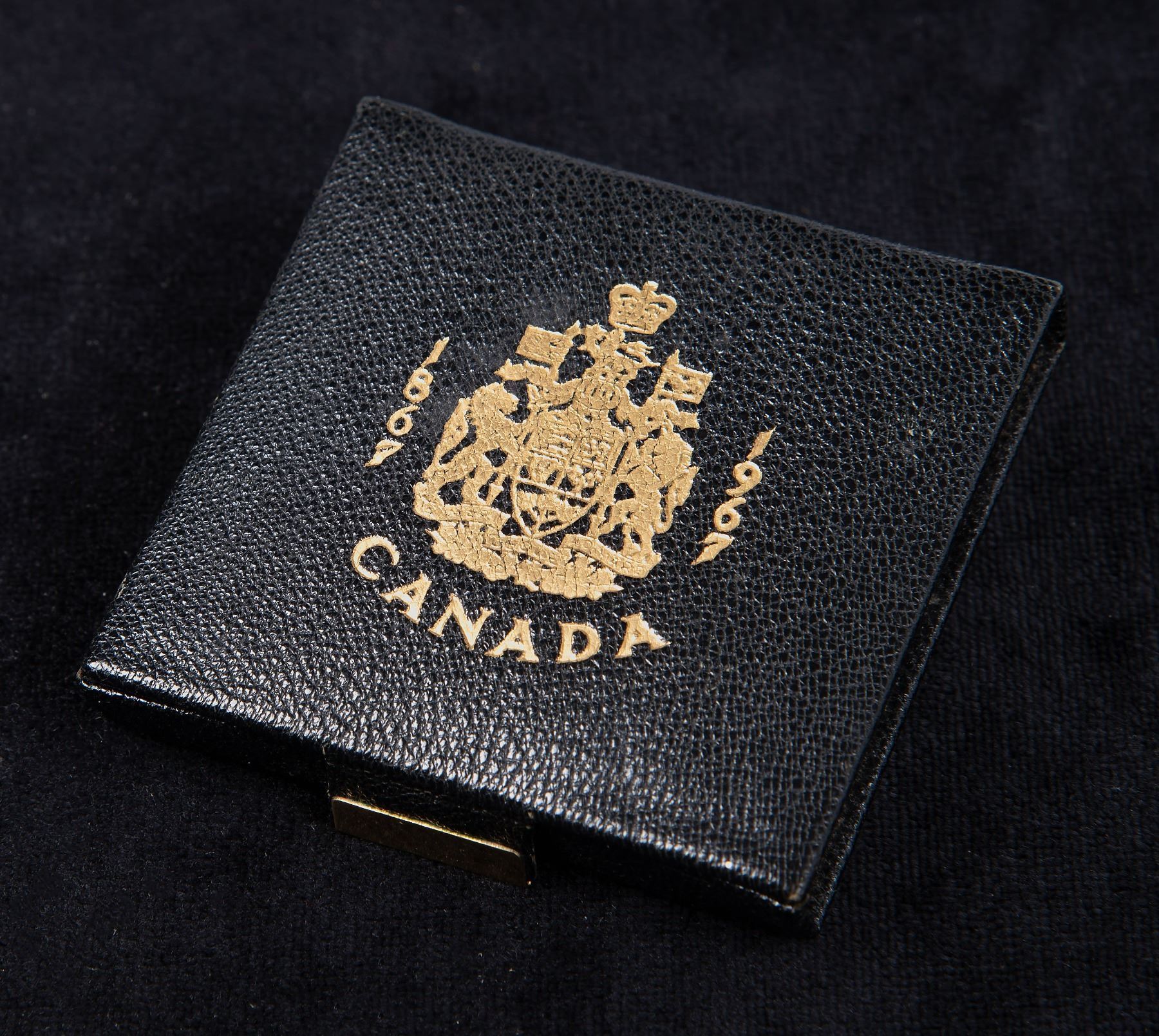 A 36mm Sterling Silver Centennial medal of 1967, housed in a small 7x7cm black leather case with clasp and gold embossing on outer lid. First reported to Charlton by us in 2006, this highly-elusive case variety would appear to be a VIP or possibly a prototype issue, and we have handled a total of 4 examples only in the ensuing 15 years. A nice piece for the Centennial specialist (now listed as Charlton 15 in their Specimen cases section)