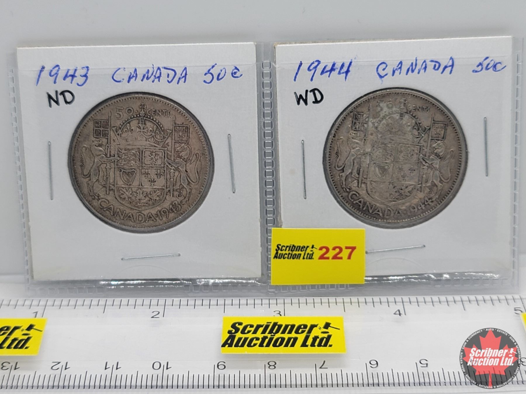 Canada Fifty Cent - Strip of 2: 1943ND; 1944WD