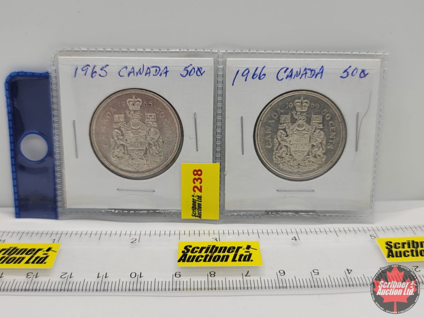 Canada Fifty Cent - Strip of 2: 1965; 1966