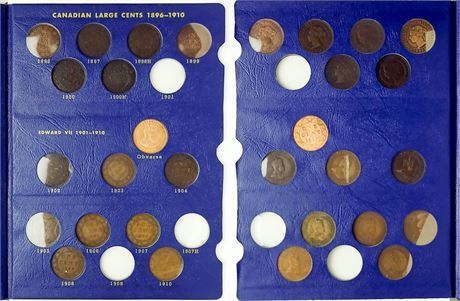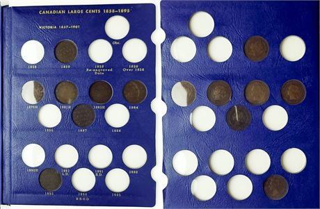 Canada High Grade Partial Large Cent Album 1858-1920 1859, 1876H, 1881H, 1882H, 1884, 1887, 1893 and more. Many in VF+ condition