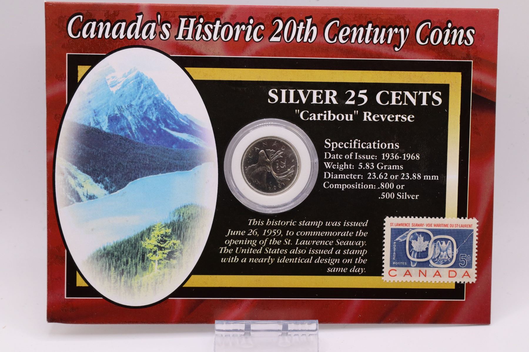Canada's Historic 20th Century Coins. Silver 25 Cents "Caribou" Reverse. 1964 $0.25 80% silver coin