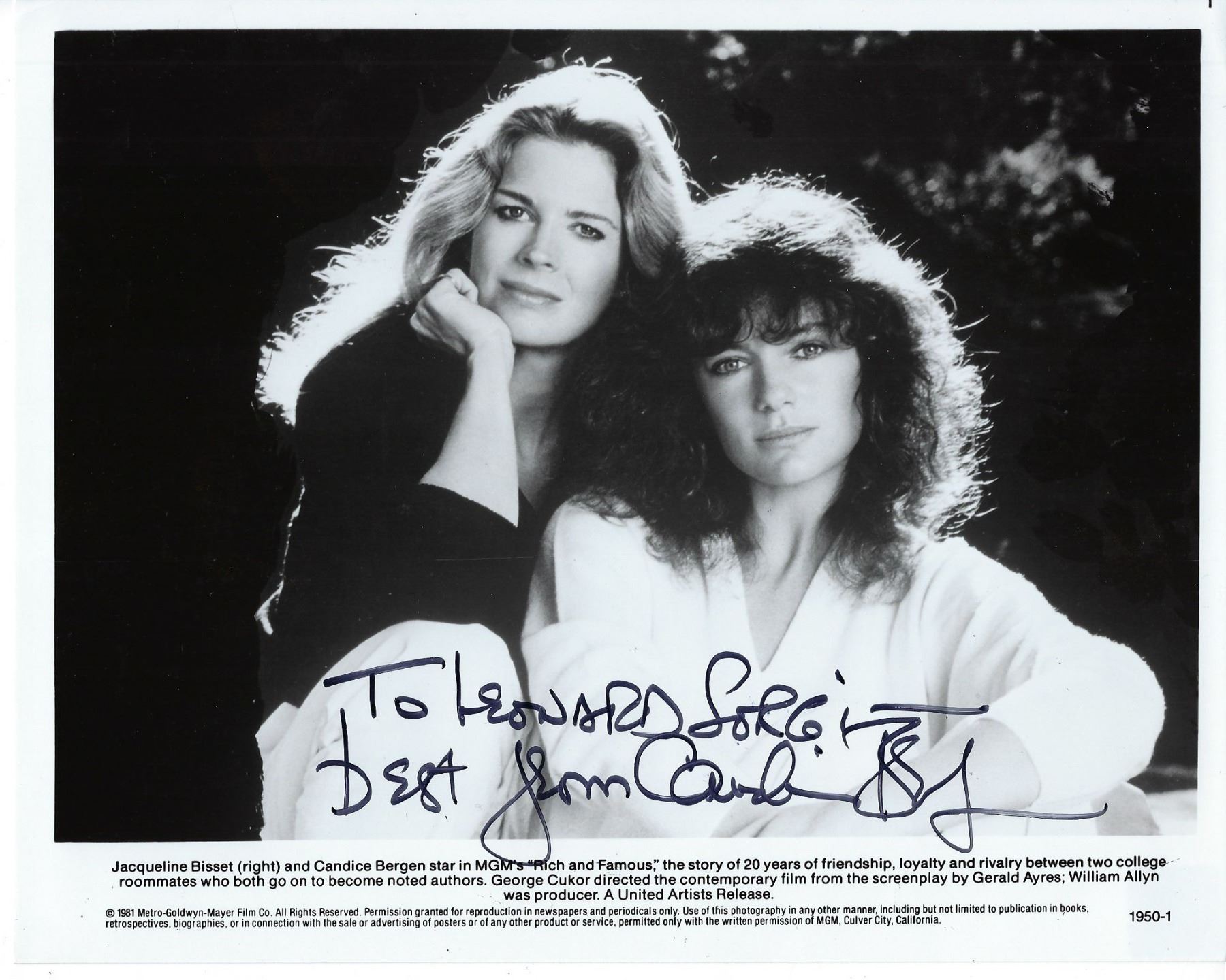 Candice Bergen Signed Photo. 10x8 inches