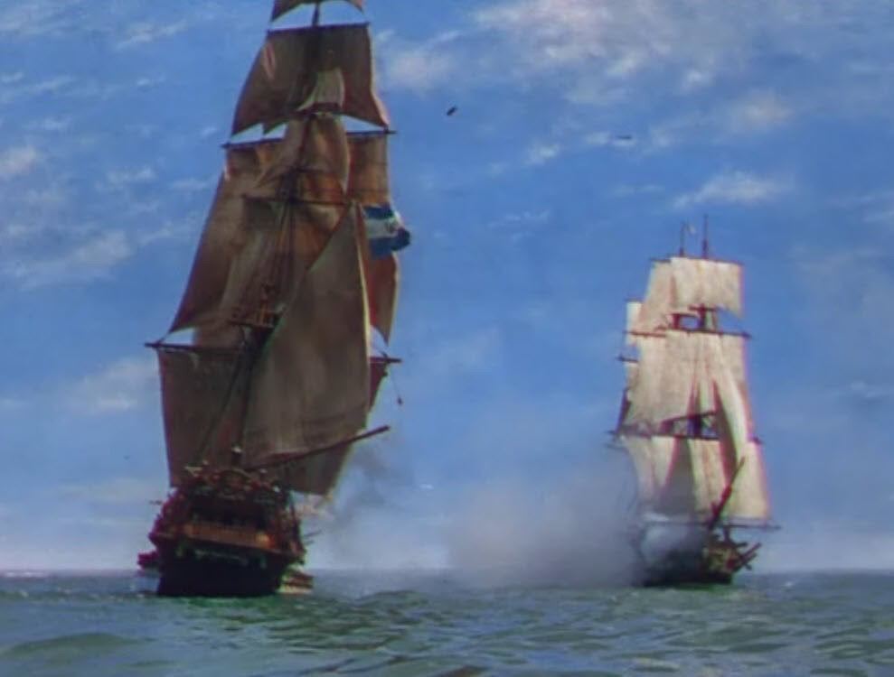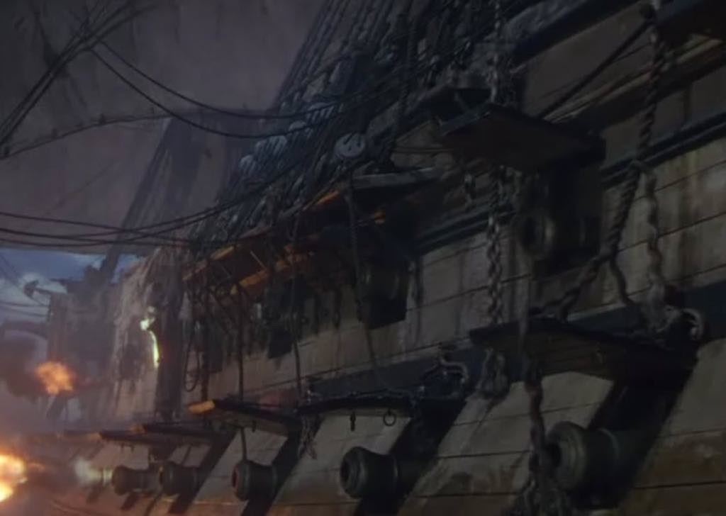 This miniature was originally a working model that contained blank cartridges used to film the cannon fire between ships. Model retains it's original electrical components (untested) and ammunition chambers.