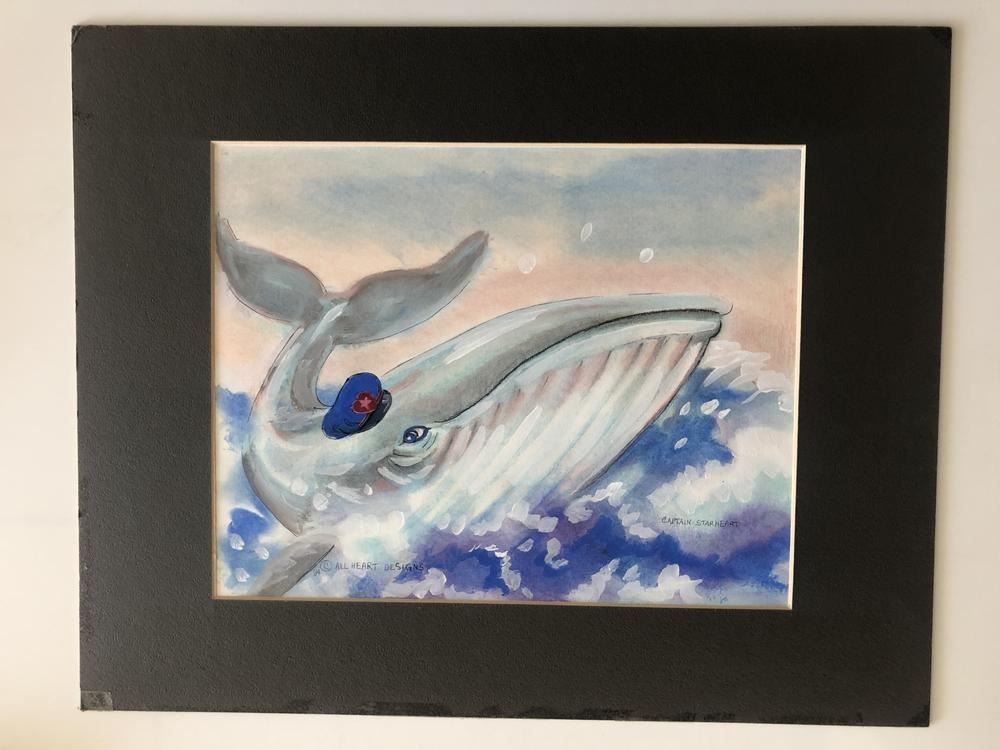 Captain Starheart Original Whale Art - All Heart Designs - Mounted. 20x16 inches