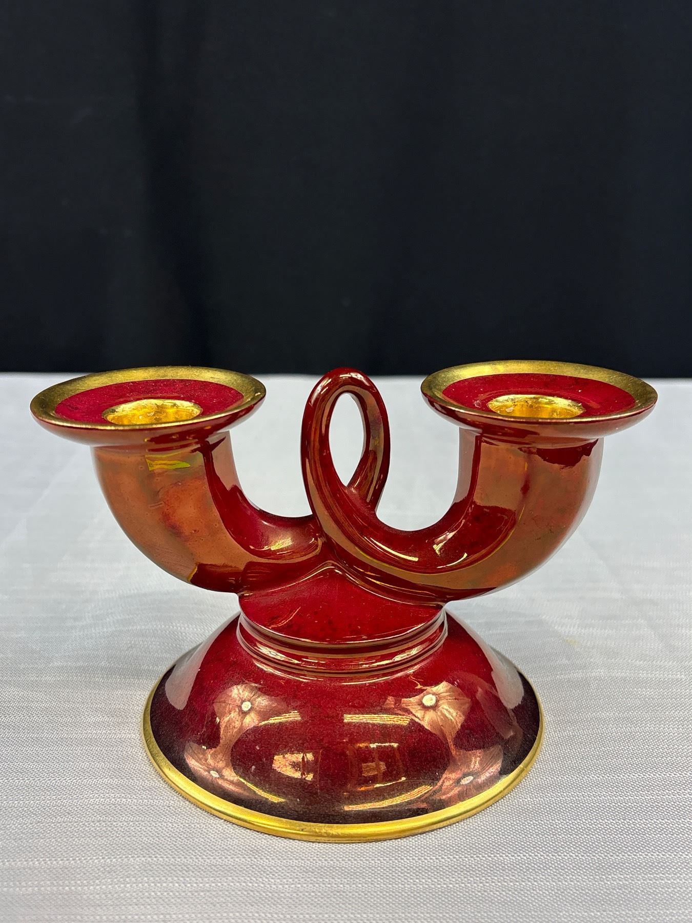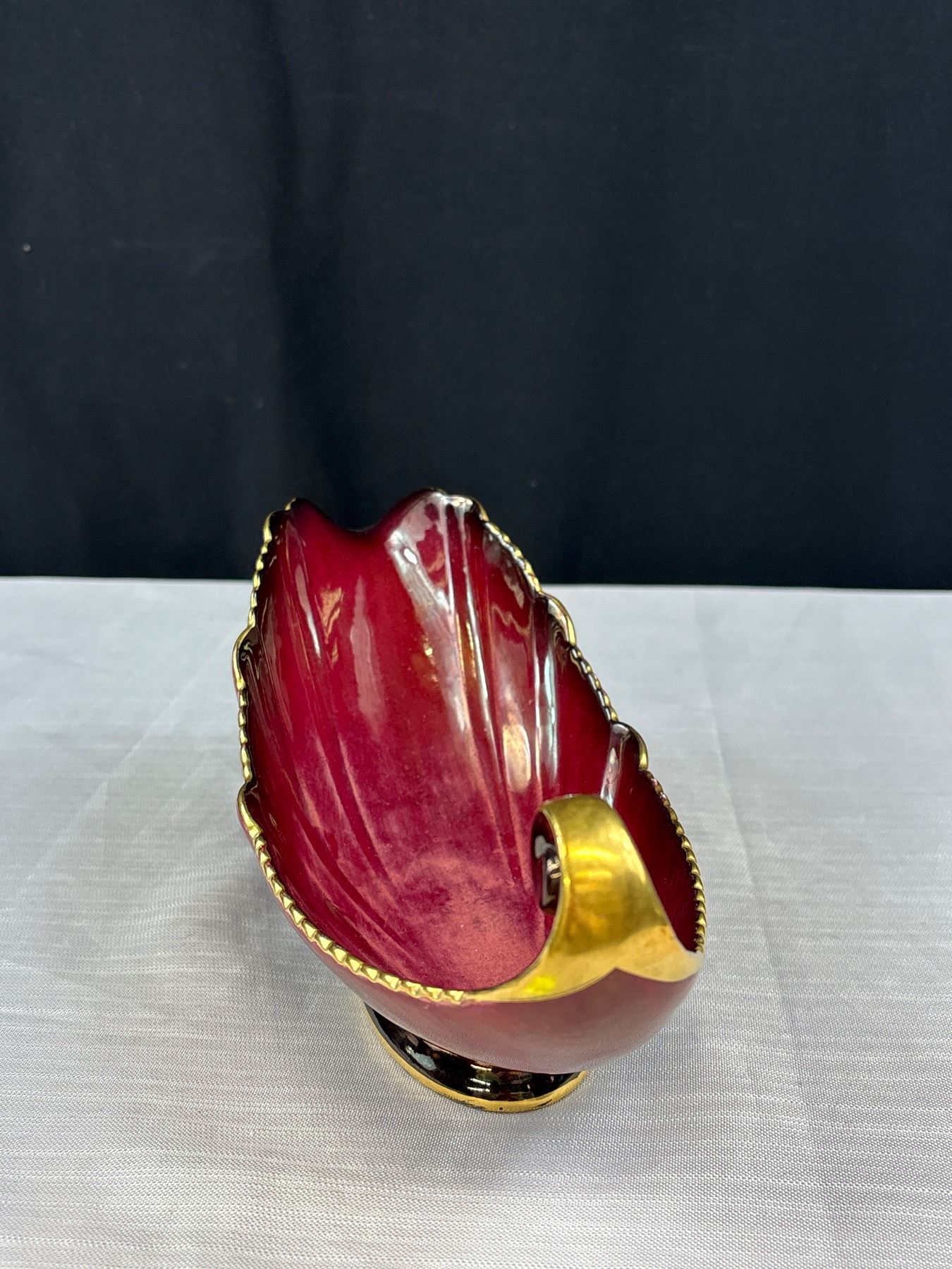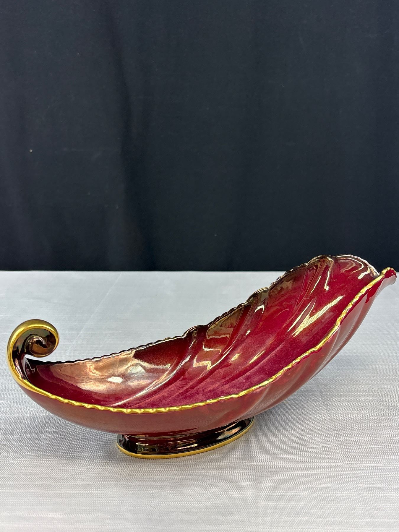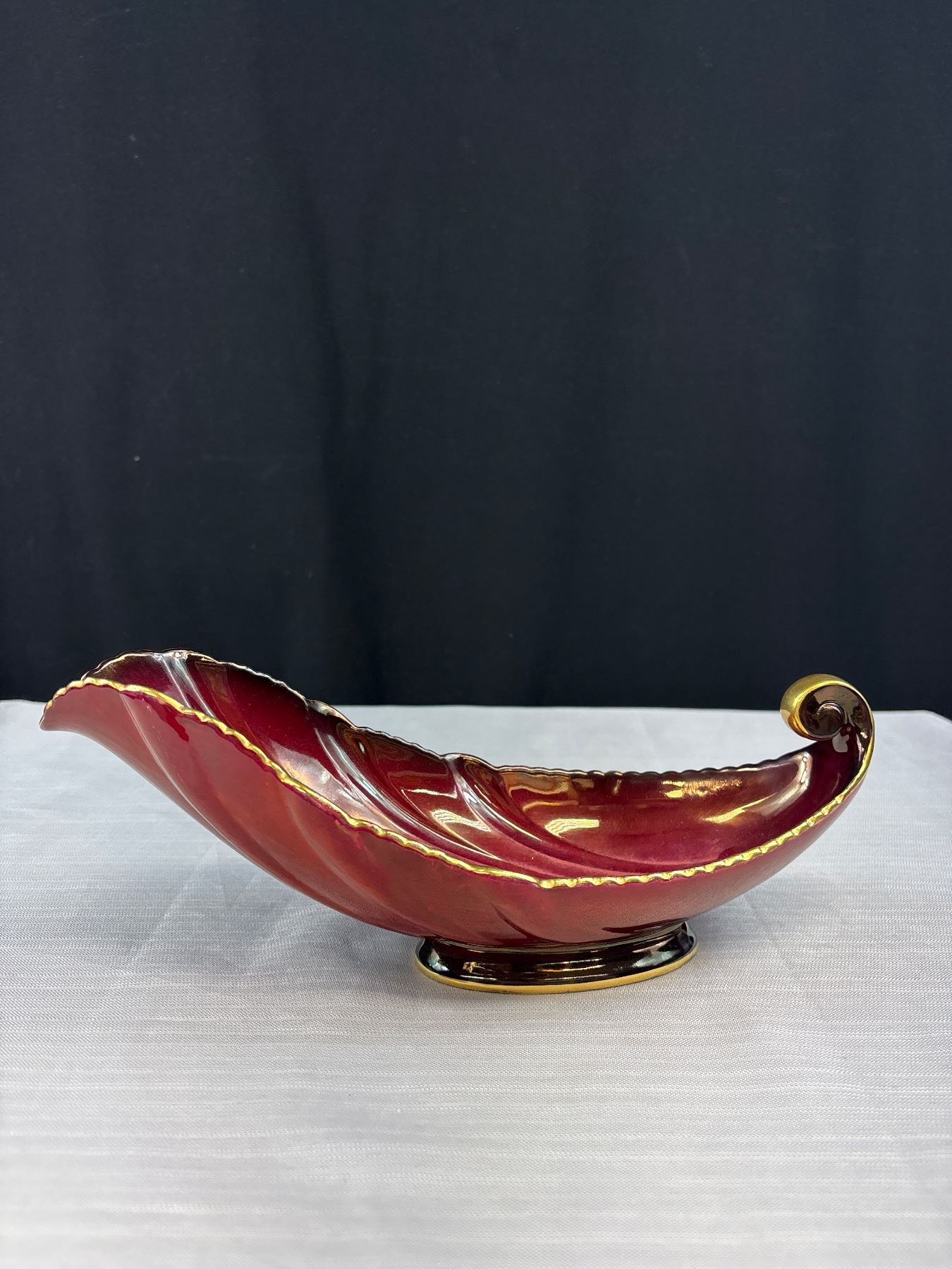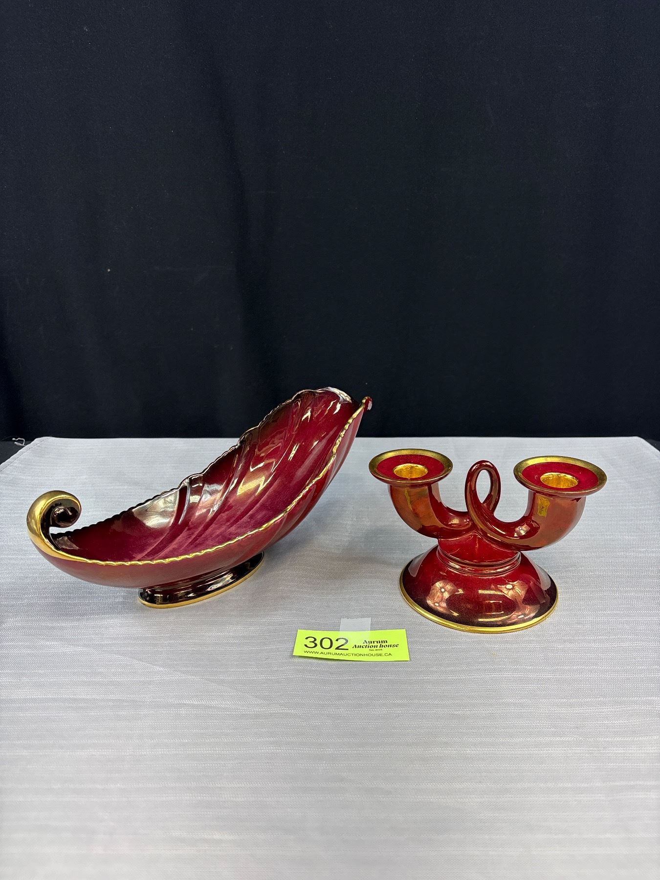 Carlton Ware England "Rouge Royale" Shell Boat & Double Candle Holder