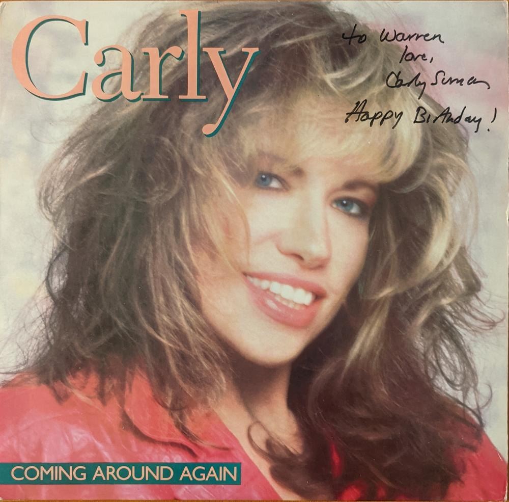 Carly Simon Coming Around Again Album autographed by Carly Simon. 12x12 inches. Vinyl Included