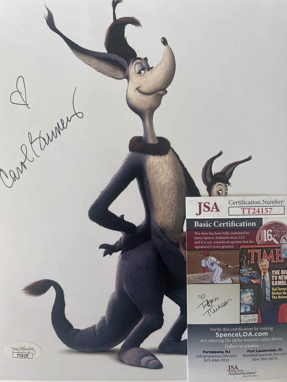 Dr. Seuss Horton Hears A Who! Sour Kangaroo signed movie photo autographed by Carol Burnett. JSA Authenticated. 8x10 inches