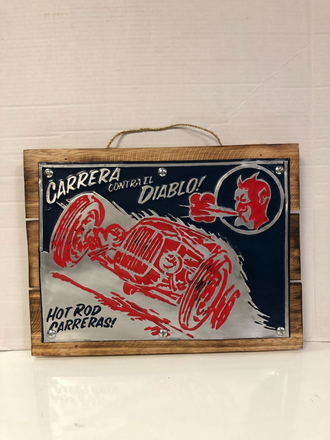 Carrera Contra El Diablo Wood Reproduction Sign - approx. 16 x 11 12/in