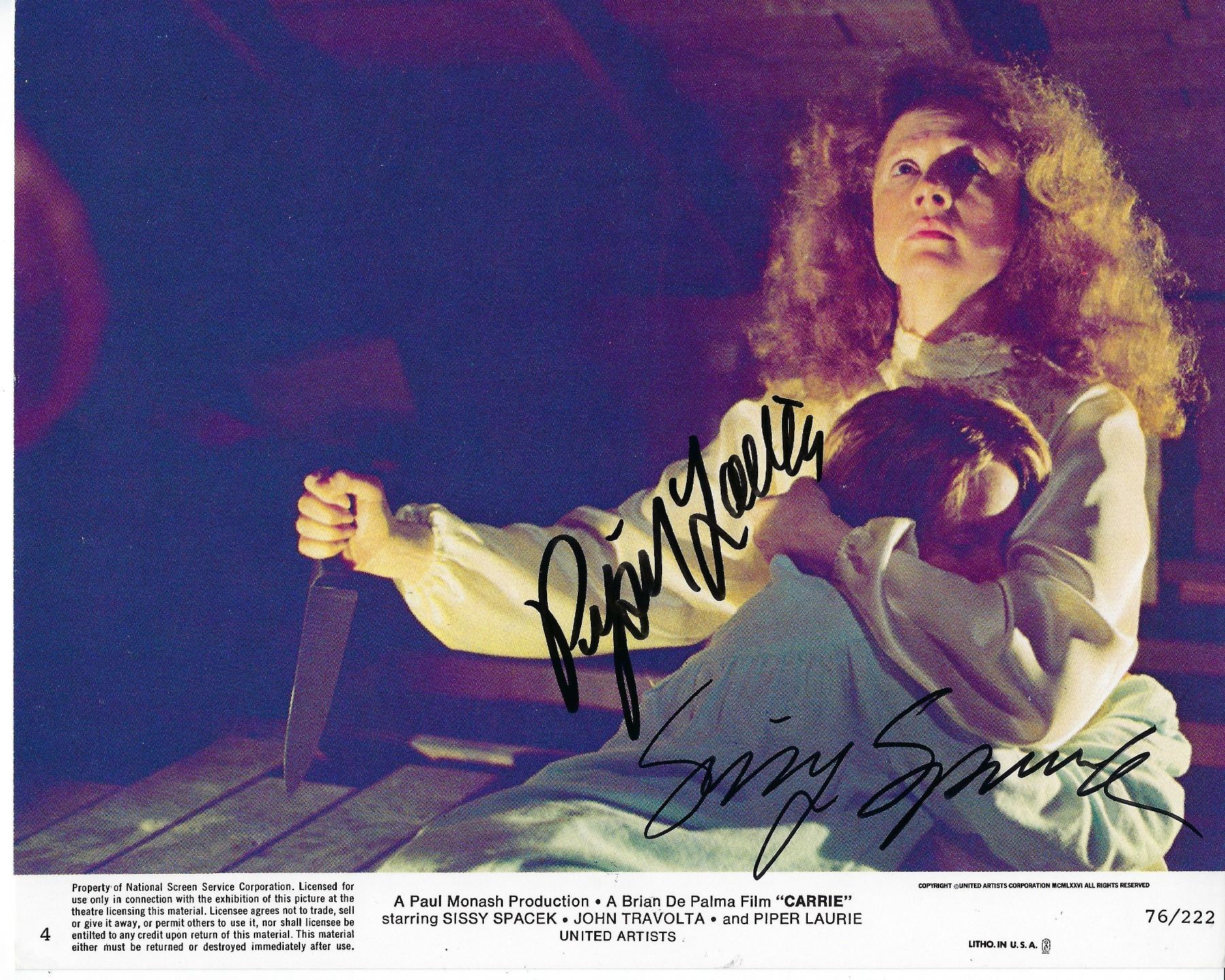 Carrie cast signed photo autographed by Piper Laurie and Sissy Spacek. 8x10 inches