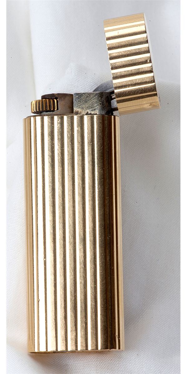Cartier Ribbed Yellow Metal Lighter. Measuring 3 inches in length and in working order.
