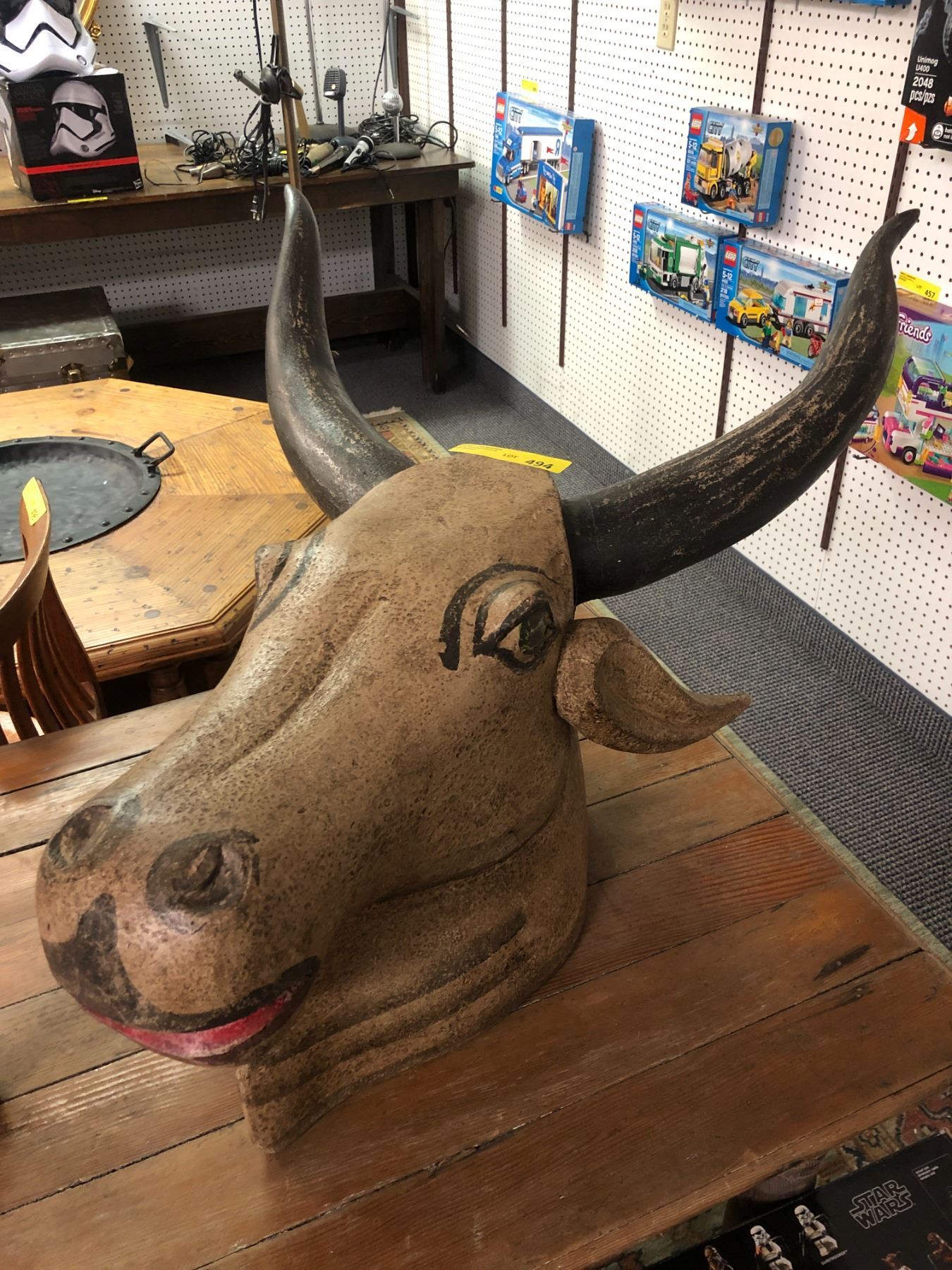 Carved & Painted Bull with Horns - approx. 36in x 24in x 17in