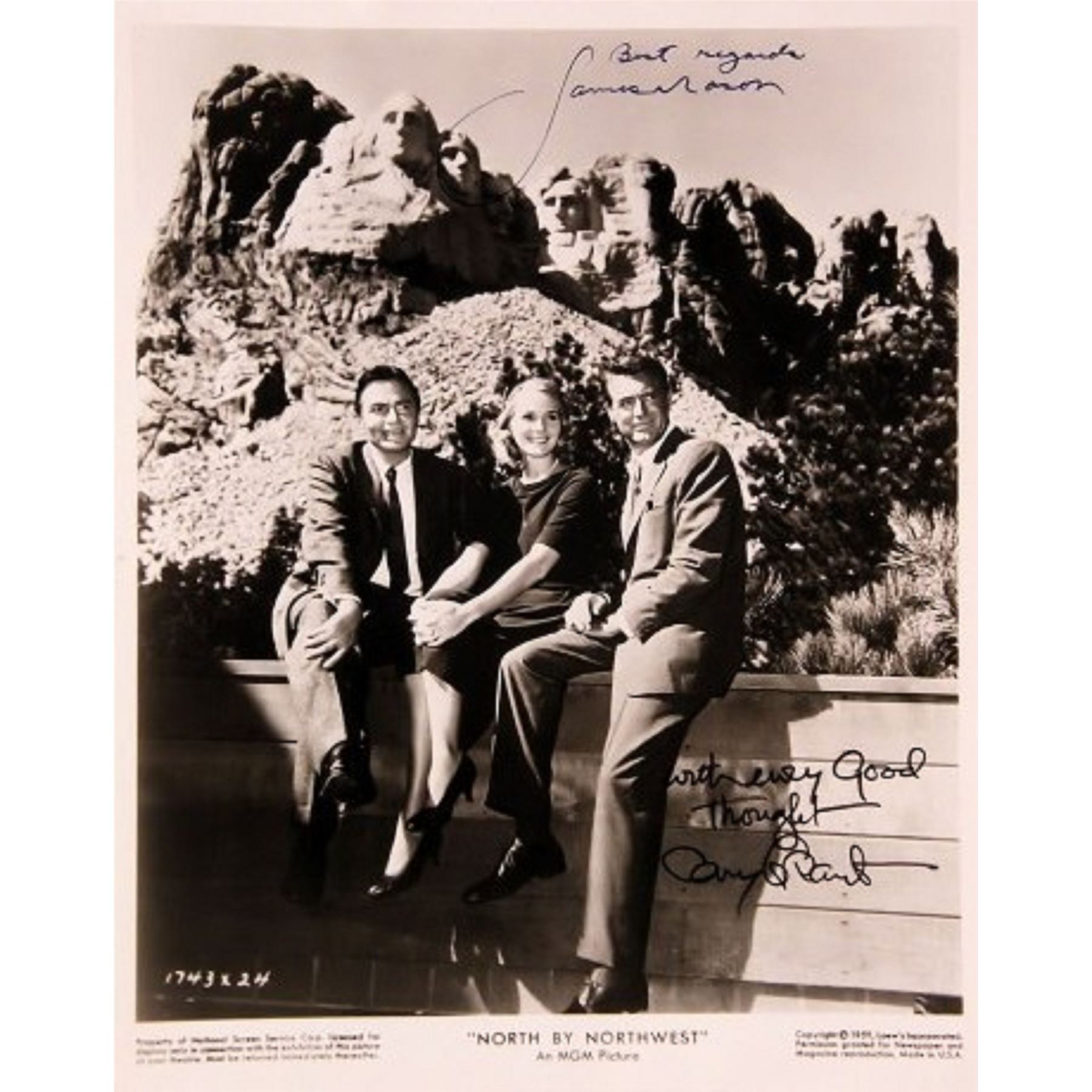 8 in. by 10 in. Black and white portrait photo autographed by Cary Grant and James Mason as With Every Good Thought Cary Grant and Best Regards James Mason.