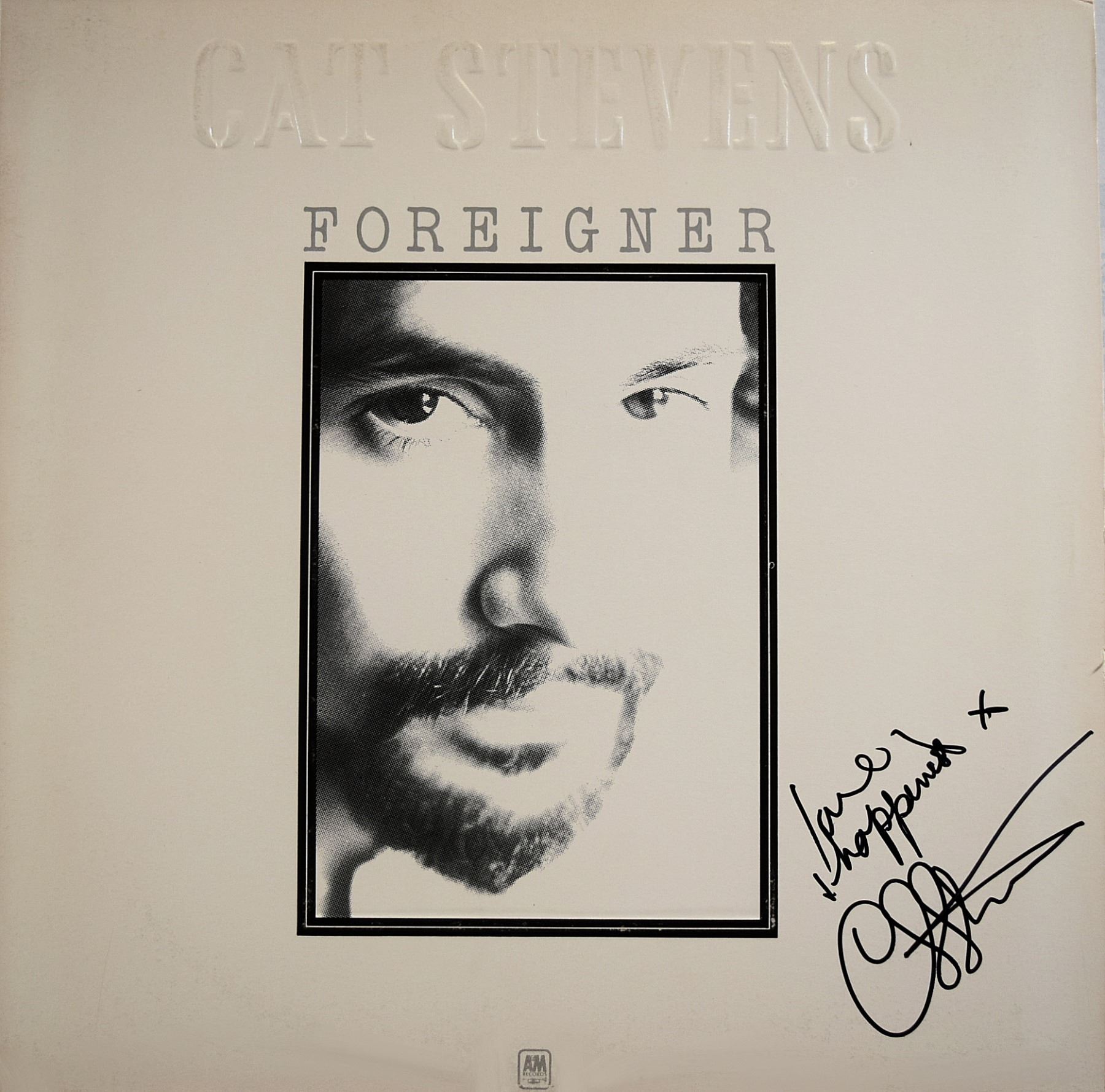 Cat Stevens 1973 Foreigner album. Signed: Love Happiness Cat Stevens.