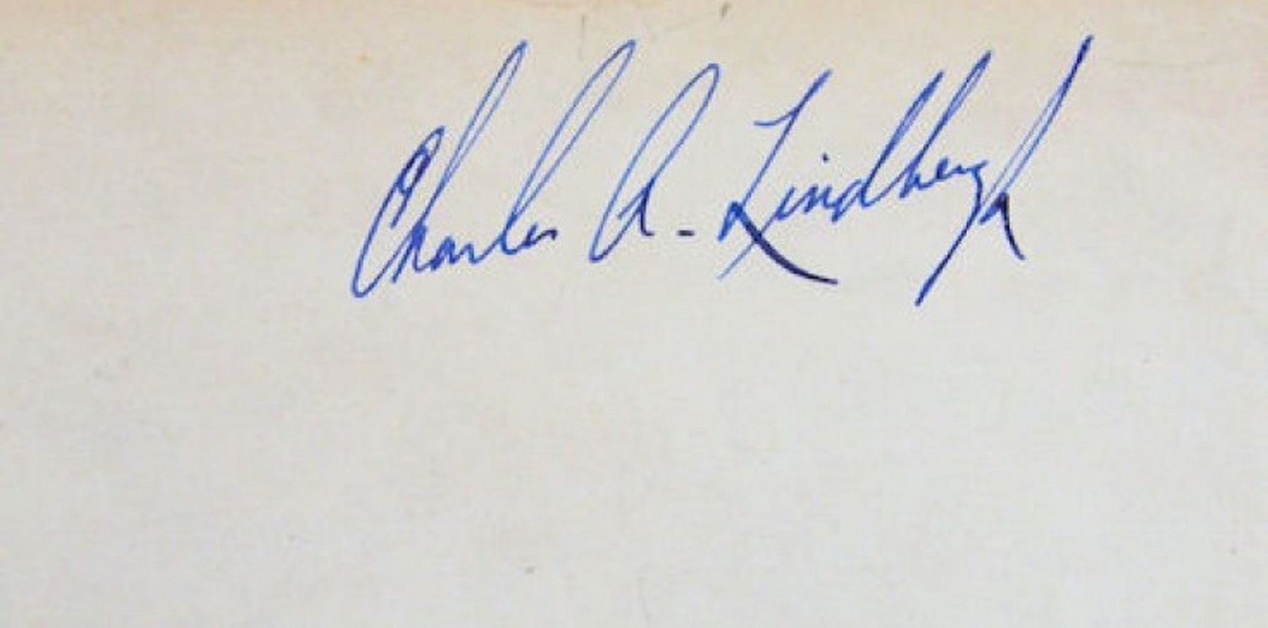 5.25 in. by 3.25 in. autographed slip by Charles A. Lindbergh.