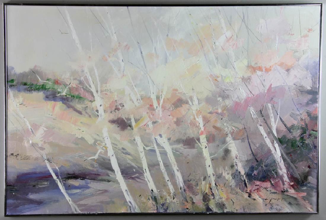 Charles Gruppe, New Hampshire birch trees, oil on canvas, 32" x 48". Provenance: North Andover, Massachusetts estate.