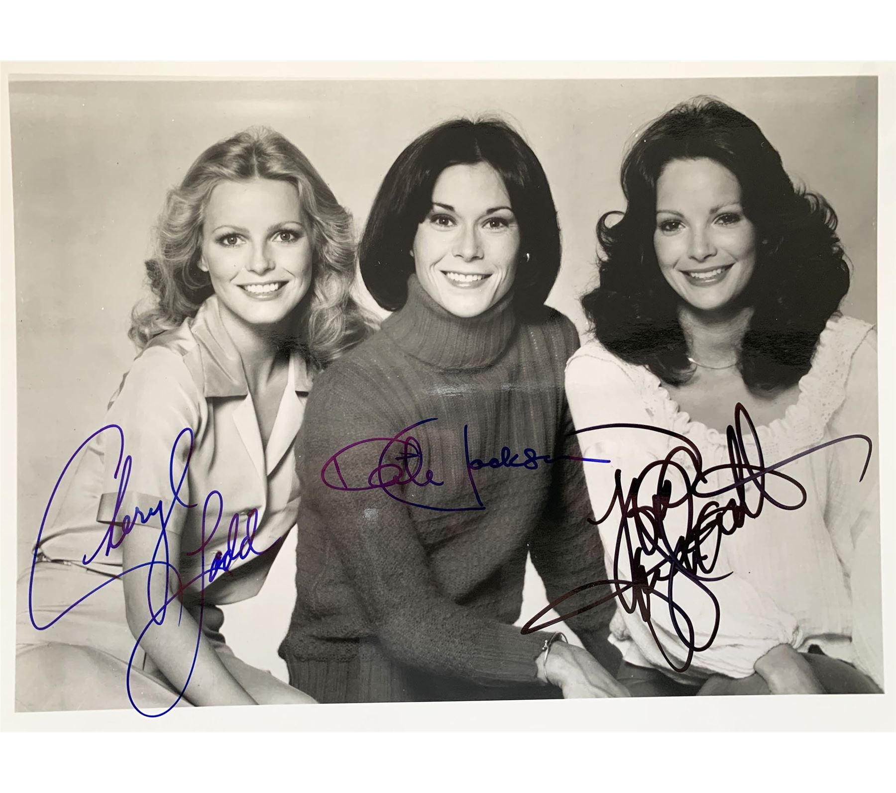 Charlie's Angels cast signed photo autographed by Cheryl Ladd, Kate Jackson and Jaclyn Smith. 8x10 inches