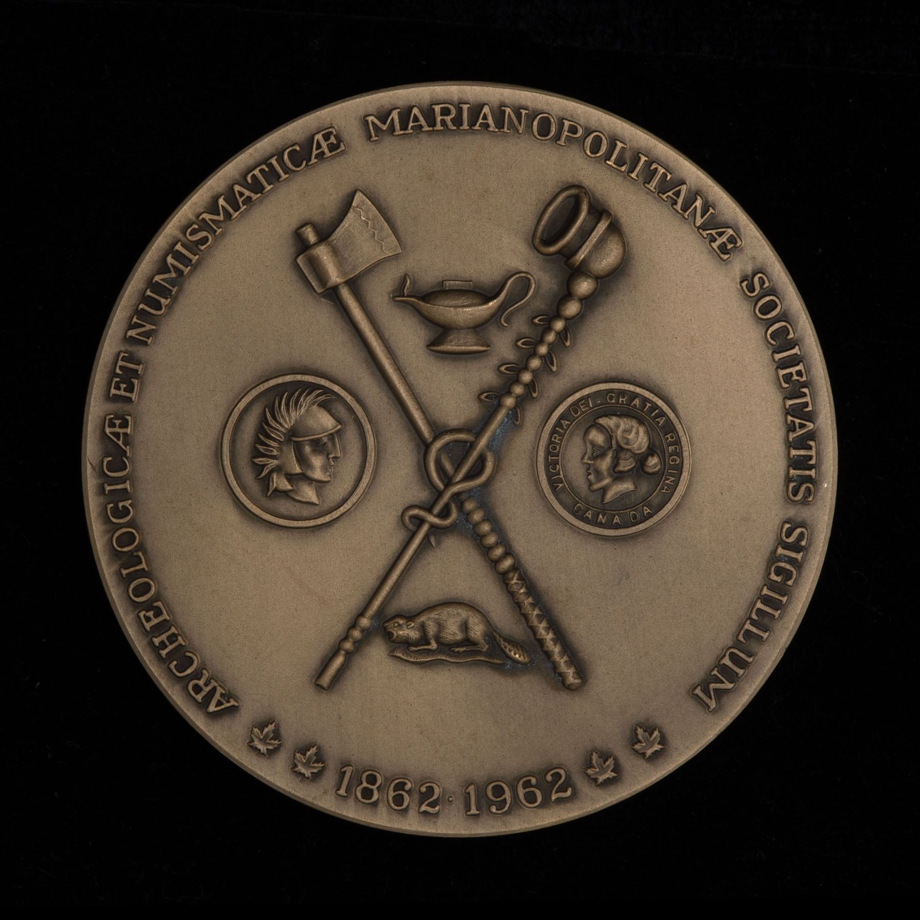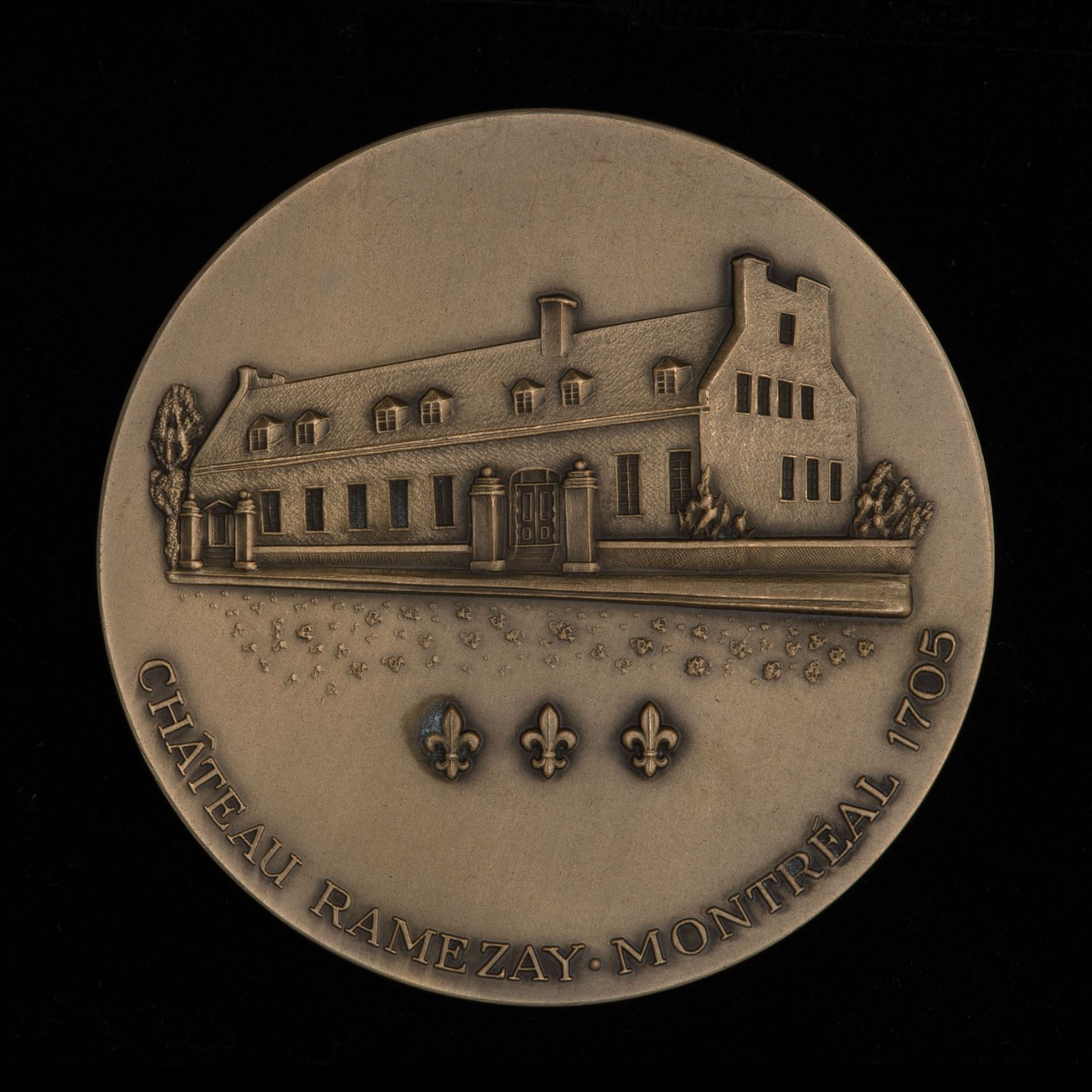 A 70mm antiqued bronze medal by Scully of Montreal, issued to commemorate the 1962 centenary of the venerable Chateau Ramezay's Numismatic and Archeological collection