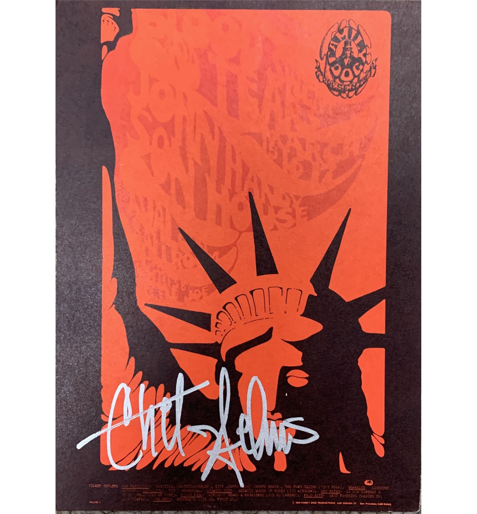 Chet Helms signed postcard Avalon Ballroom 1968. 5x7 inches