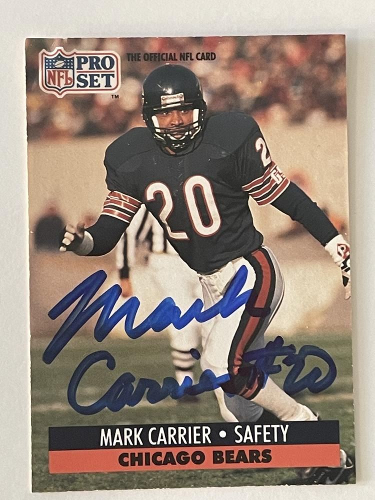 Chicago Bears Mark Carrier 1991 NFL #101 signed trading card. 2x3 inches