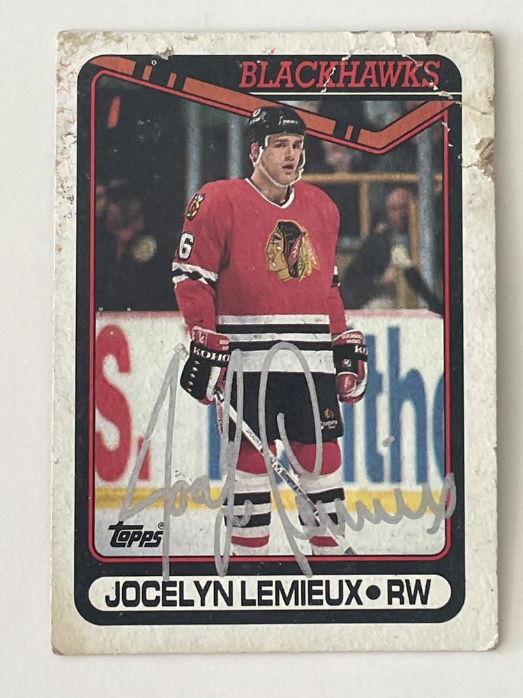 Chicago Blackhawks Jocelyn Lemieux 1990 Topps #237 signed trading card. 2x3 inches