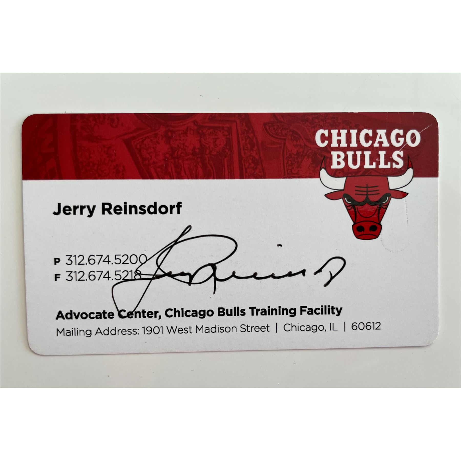 Chicago Bulls Chairman Jerry Reinsdorf signed business card. 2x3inches