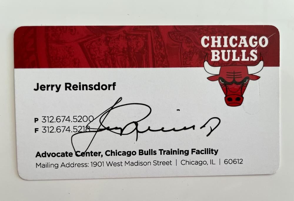 Chicago Bulls Chairman Jerry Reinsdorf signed business card. 2x3inches
