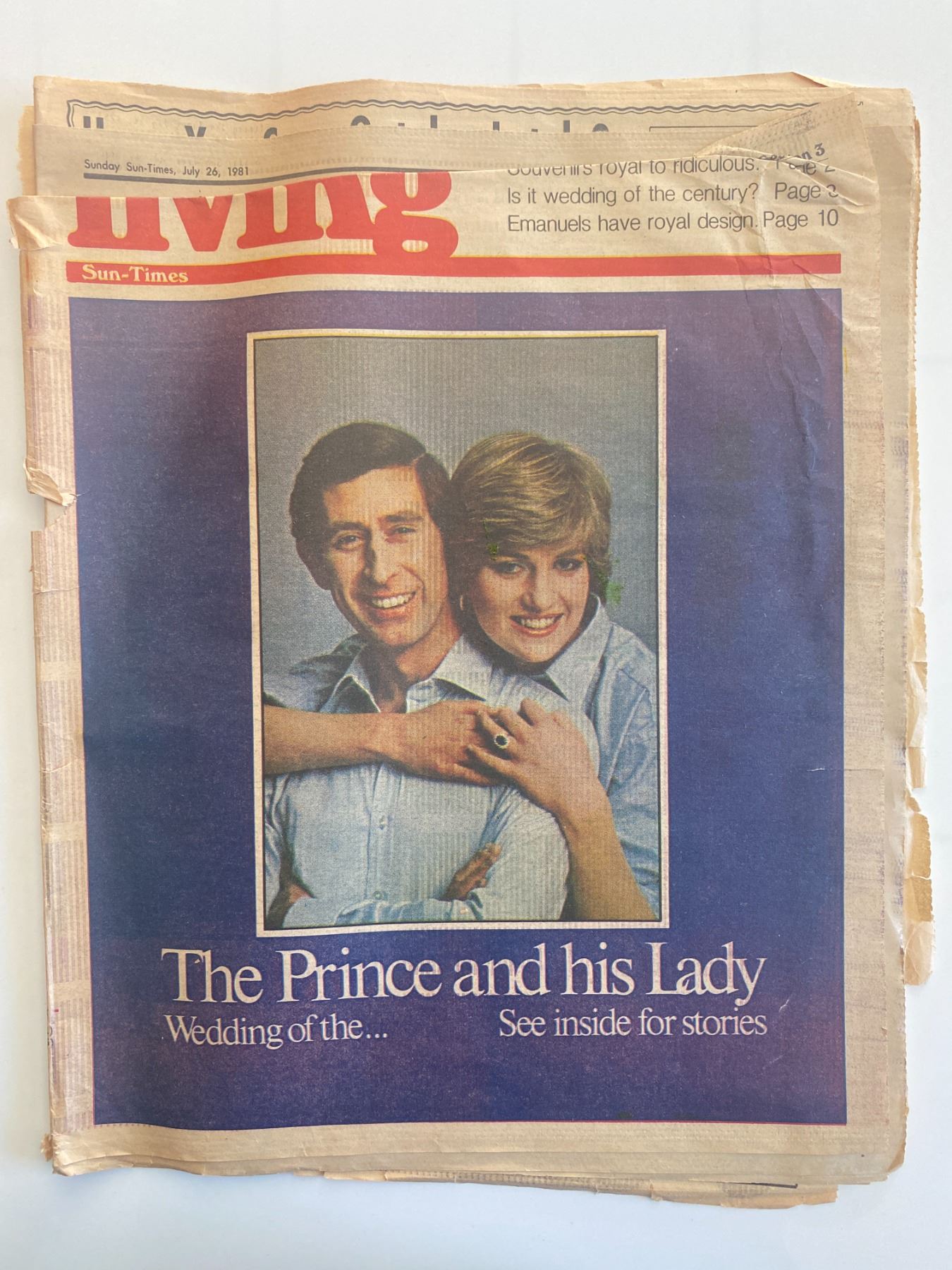Chicago Living Sun-Times Original 1981 Vintage Newspaper-THe Prince and his Lady Wedding of the...-Sun. July 26, 1981. Includes Wear and Tear. Not For Reading. 12x15 inches