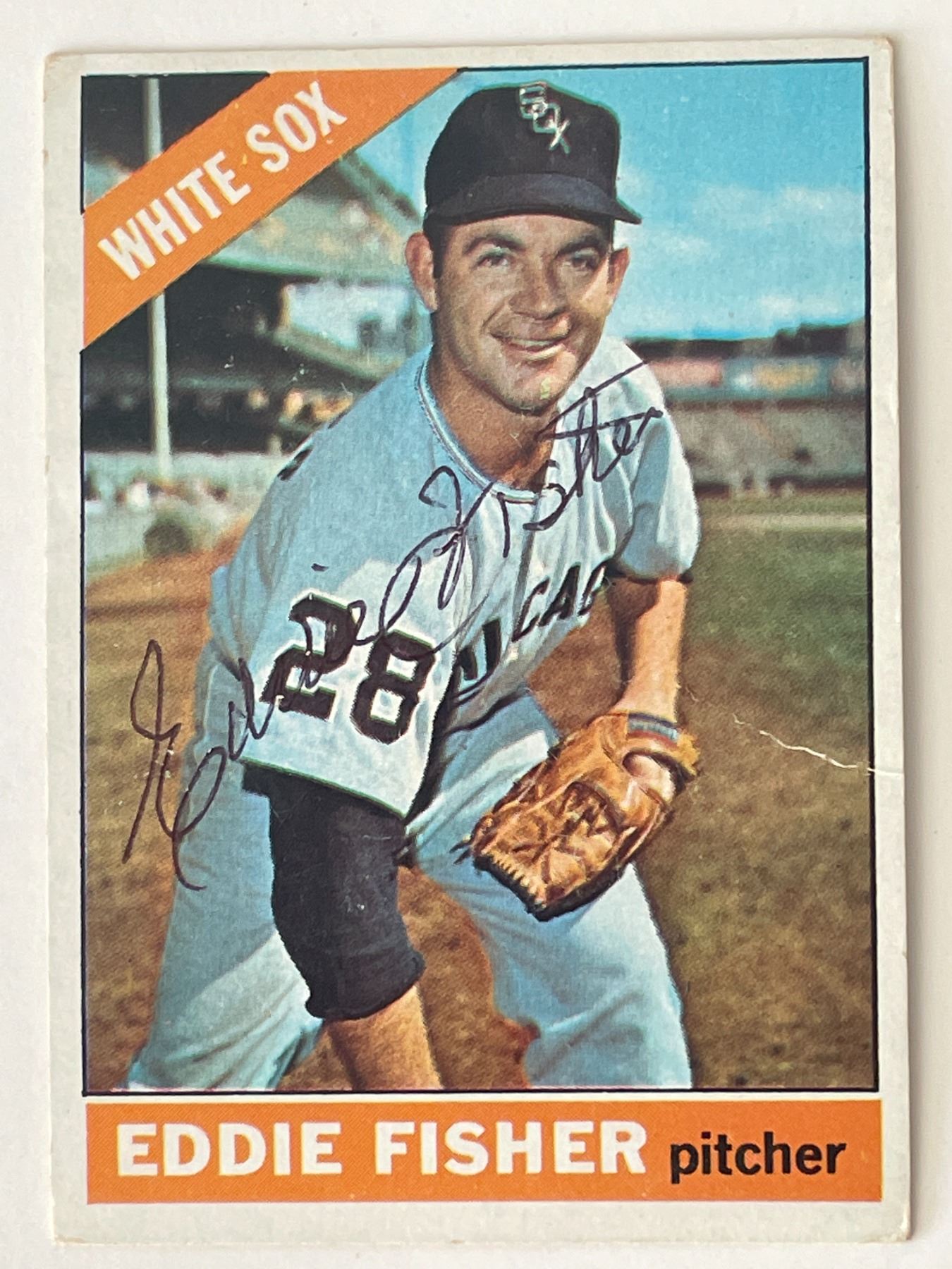 Chicago White Sox Eddie Fisher 1963 Topps signed trading card. 2x3 inches