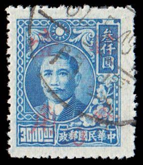 China, 1949, Silver Yuan, Amoy Surcharge, 10 on 3000 blue Chan S152, a lovely, fresh used example, cancelled by neat partial 31.5.49 Amoy bilingual c.d.s., Very Fine.