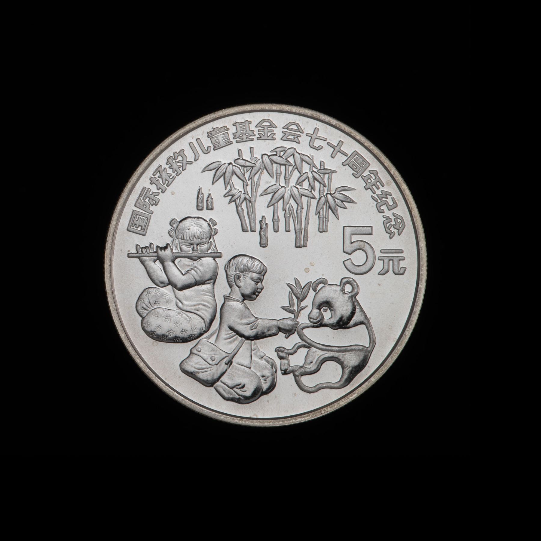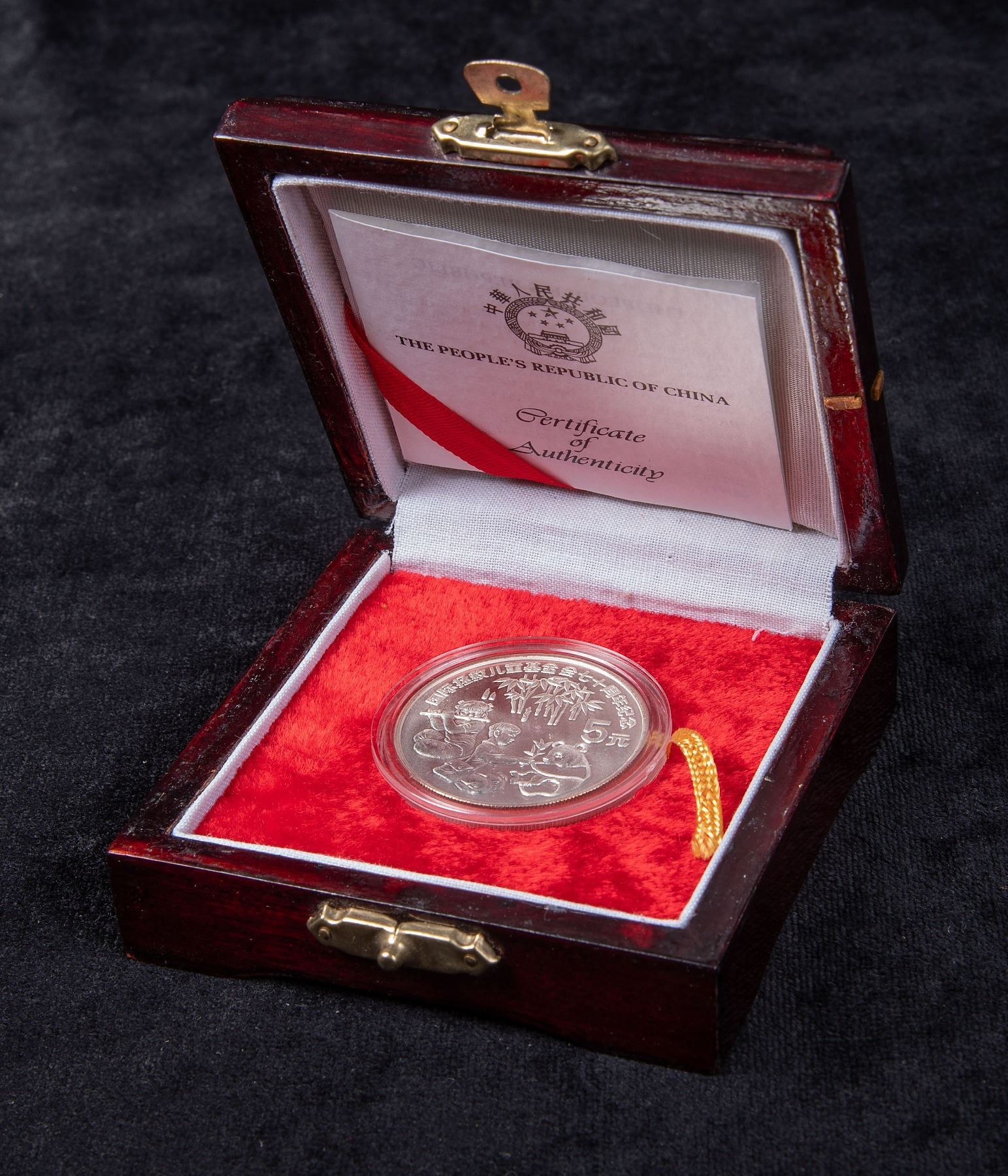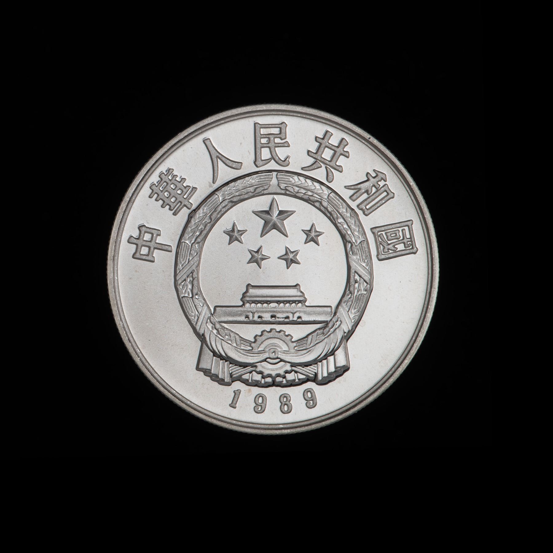 Silver 5 Yuan of 1989, KM.260, BU Striking in original wood case with certificate