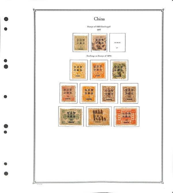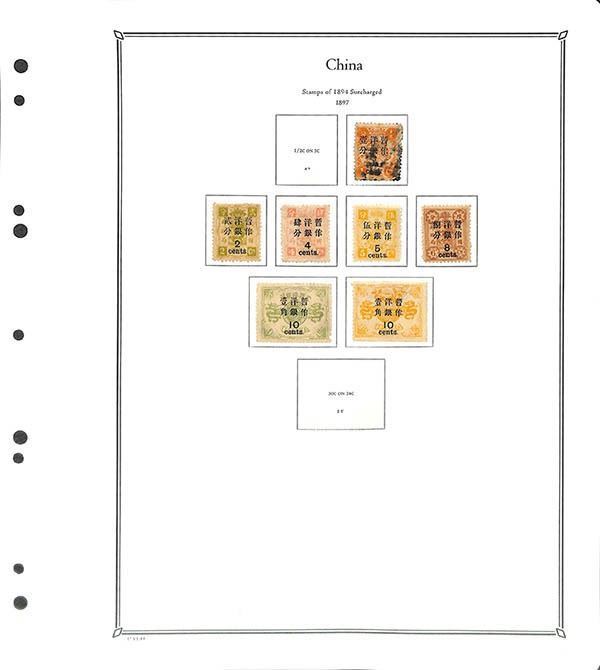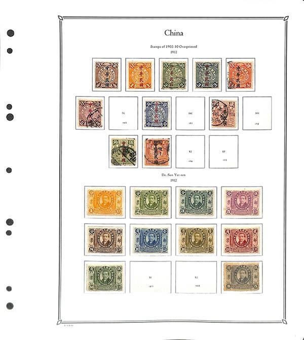 China, Lovely and solid collection, 1878-1949, presented in three slipcased Palo hingeless albums covering issues of the Empire, the Republic, plus Manchukuo, Japanese Occupations, and Provinces; a wealth of nice, clean and sound material throughout, including used Scott #2, 8, 10, 11, 26 and 108; mint #12, 13, 74, 77, 78, 79, 80, 82, 93-95, 120, 178-189 less the 1 and 2 values, 290-296, 297-306, 326-329, 471, 984-987, 997-1006, C1-C5, C6-C10, and C59; other highlights feature a near-complete First-Issue Dowager set, regular and overprinted, each a mix of mint and used; nice mint and used Junks from all three printings; a used perfined #283; extensive and near-complete, nearly all-mint Dr. Sun Yat-sen and Martyrs, CNCs, Golds, some Silvers; Dues, Parcel Post and Military, etc.; Manchukuo is complete mint; Japanese Occupations mint and solidly complete; and Provinces mint less a handful and close to complete, Very Fine on the whole, a beautiful collection on which to build; examine.