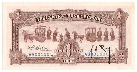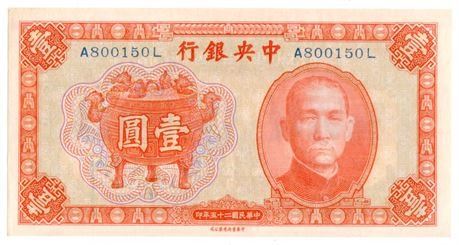 China P#211 1936 Central Bank of China 1 Yuan CHB Issue Chung Hwa Book Co. Ltd. Printer