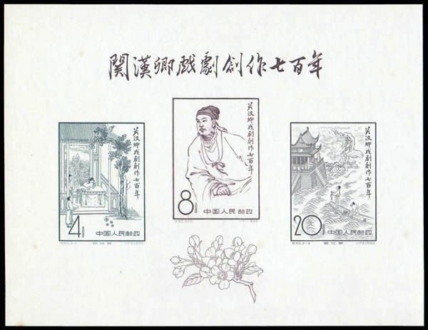 China Peoples Republic, 1958, Kuan Han-ching souvenir sheet C50M Scott 357a, Post Office fresh, without gum as issued, Very Fine. Scott 475 HK 3,740.