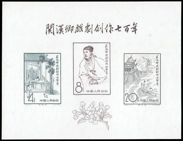 China Peoples Republic, 1958, Kuan Han-ching souvenir sheet C50M Scott 357a, fresh mint, without gum as issued, Very Fine. Scott 475 HK 3,740.