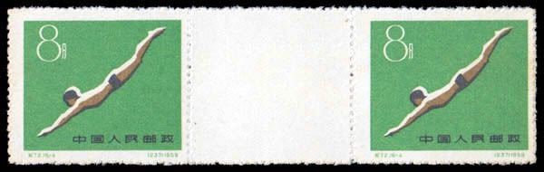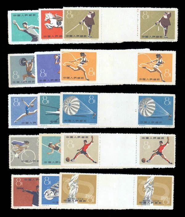 China Peoples Republic, 1959, First National Games C72 complete Scott 467-482, gutter pairs, fresh mint, without gum as issued, Very Fine, a lovely and scarce set. Scott 240 as singles HK 1,890.